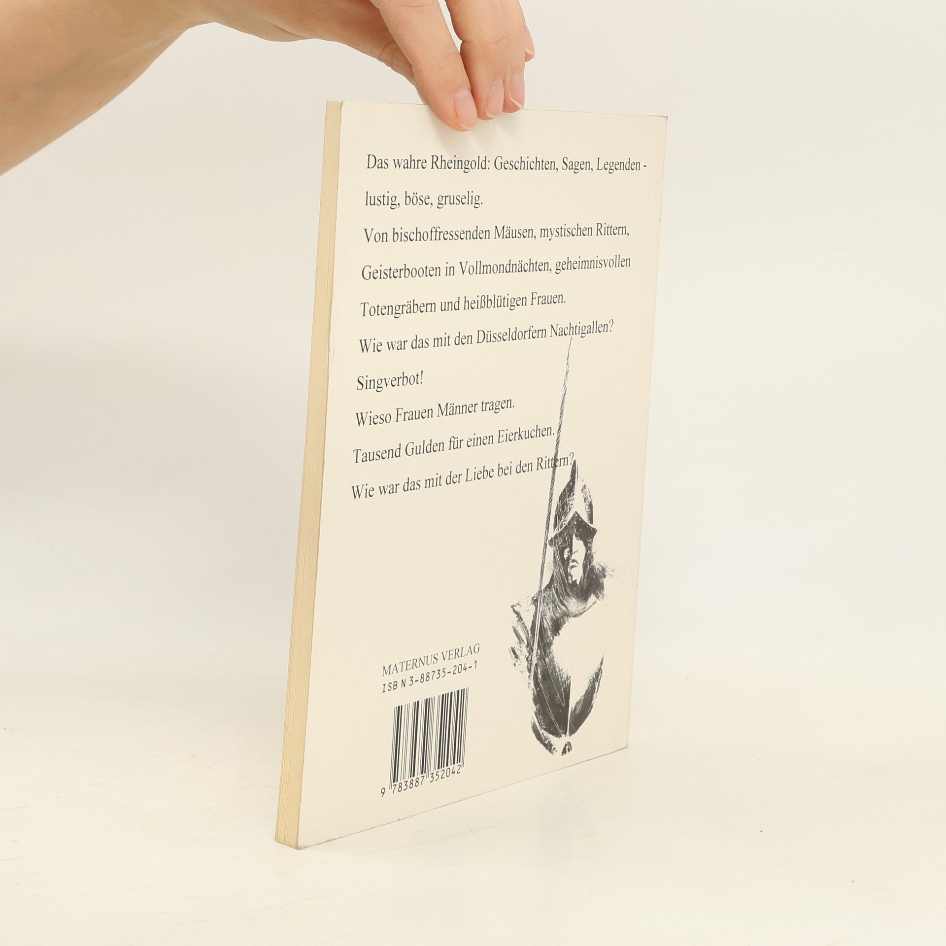 Das wahre Rheingold: Geschichten, Sagen, Legenden lustig, böse, gruselig.Von bischoffressenden Mäusen, mystischen Rittern, Geisterbooten in Vollmondnächten, geheimnisvollen Totengräbern und heißblütigen Frauen.Wie war das mit den Düsseldorfer Nachtigallen?Singverbot!Wieso Frauen Männer tragen.Tausend Gulden für einen Eierkuchen.Wie war das mit der Liebe bei den Rittern?