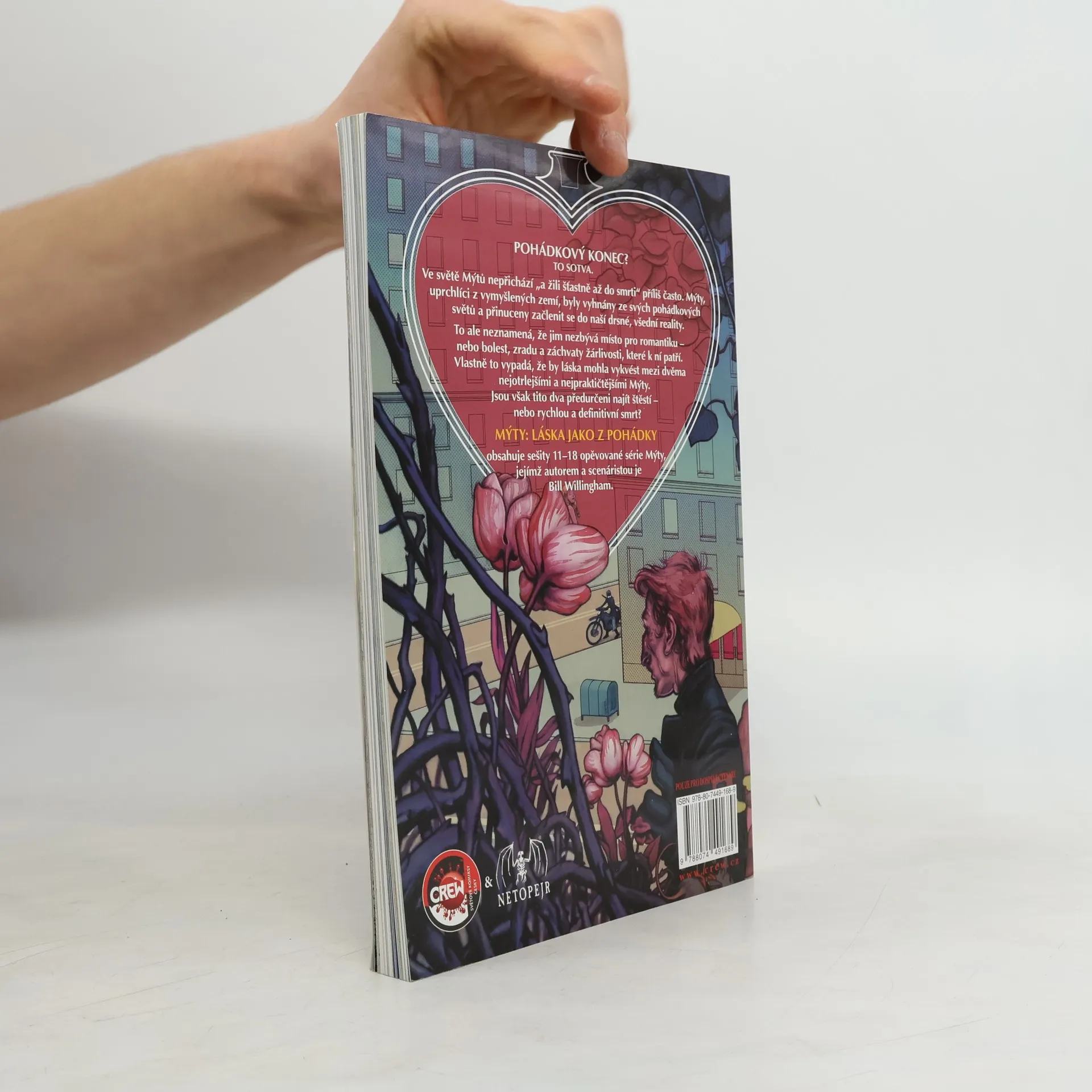 Pohádkový konec? To sotva. Ve světě Mýtů nepřichází „a žili šťastně až do smrti“ příliš často. Mýty, uprchlíci z vymyšlených zemí, byly vyhnány ze svých pohádkových světů a přinuceny začlenit se do naší drsné, všední reality. To ale neznamená, že jim nezbývá místo pro romantiku – nebo bolest, zradu a záchvaty žárlivosti, které k ní patří. Vlastně to vypadá, že by láska mohla vykvést mezi dvěma nejotrlejšími a nejpraktičtějšími Mýty. Jsou však tito dva předurčeni najít štěstí – nebo rychlou a definitivní smrt?