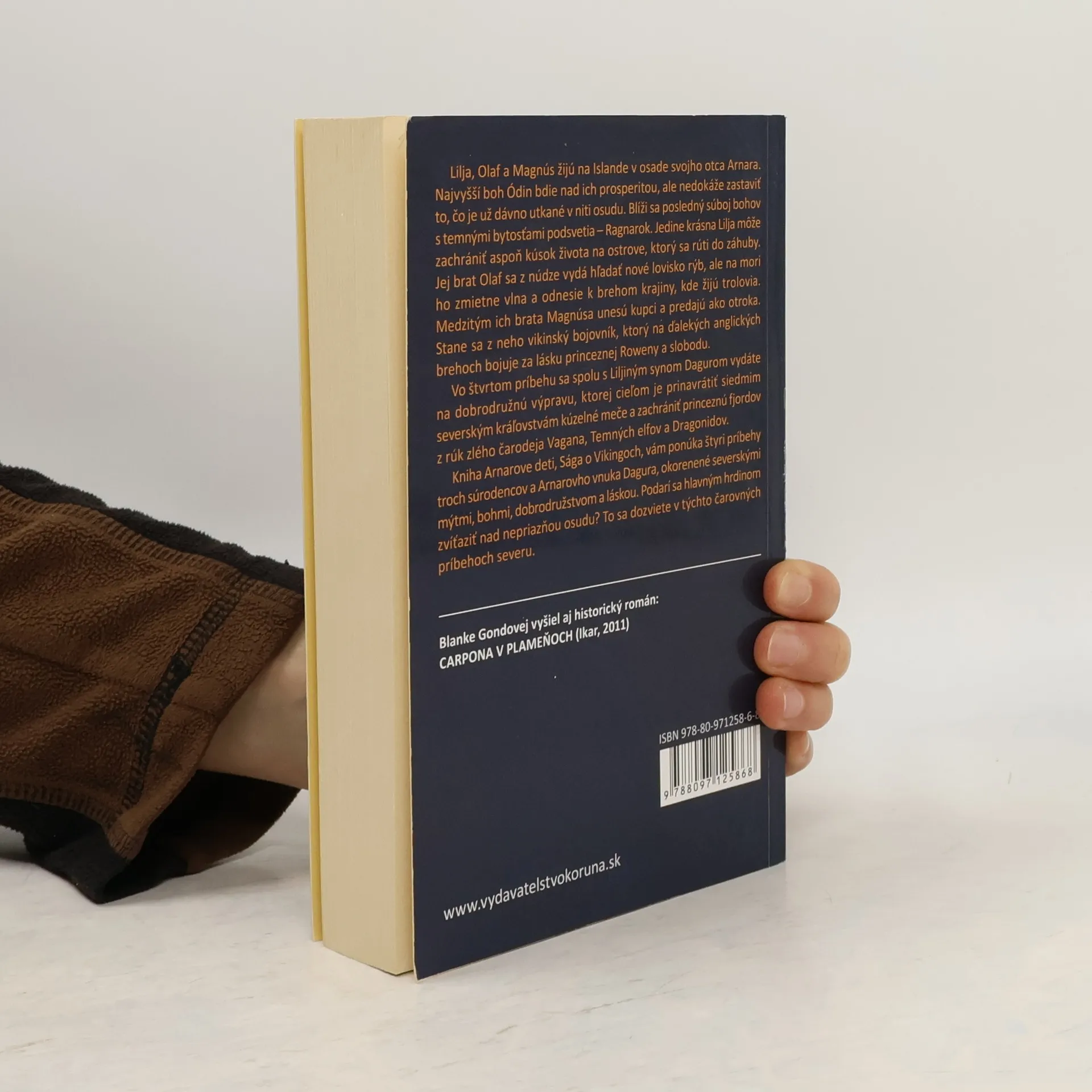 Lilja, Olaf a Magnús žijú na Islande v osade svojho otca Arnara. Najvyšší boh Ódin bdie nad ich prosperitou, ale nedokáže zastaviť to, čo je už dávno utkané v niti osudu. Blíži sa posledný súboj bohov s temnými bytosťami podsvetia - Ragnarok. Jedine krásna Lilja môže zachrániť aspoň kúsok života na ostrove, ktorý sa rúti do záhuby. Jej brat Olaf sa z núdze vydá hľadať nové lovisko rýb, ale na mori ho zmietne vlna a odnesie k brehom krajiny, kde žijú trolovia. Medzitým ich brata Magnúsa unesú kupci a predajú ho ako otroka. Stane sa z neho vikinský bojovník, ktorý na ďalekých anglických brehoch bojuje za lásku princeznej Roweny a slobodu. Vo štvrtom príbehu sa spolu s Liljiným synom Dagurom vydáte na dobrodružnú výpravu, ktorej cieľom je prinavrátiť siedmim severským kráľovstvám kúzelné meče a zachrániť princeznú fjordov z rúk zlého čarodeja Vagana, Temných elfov a Dragonidov. Kniha Arnarove deti, Sága o Vikingoch, vám ponúka štyri príbehy troch súrodencov a Arnarovho vnuka Dagura, okorenené severskými mýtmi, bohmi, dobrodružstvom a láskou. Podarí sa hlavným hrdinom zvíťaziť nad nepriazňou osudu? To sa dozviete v týchto čarovných príbehoch severu.