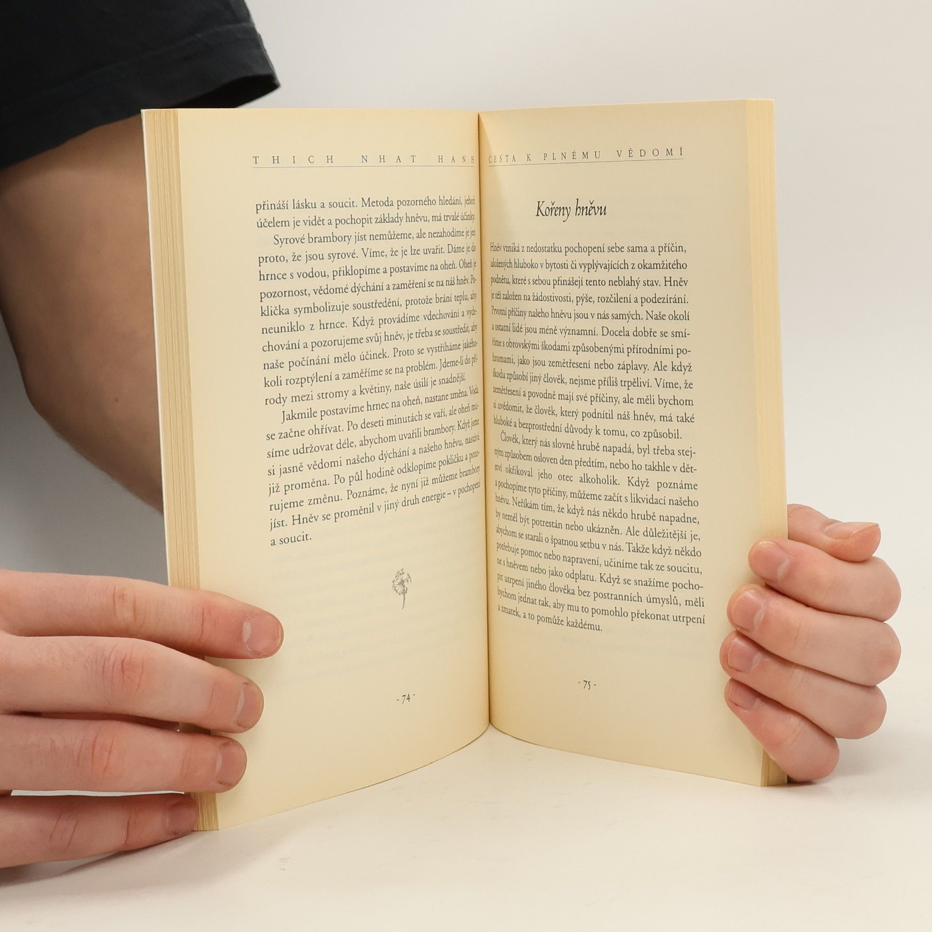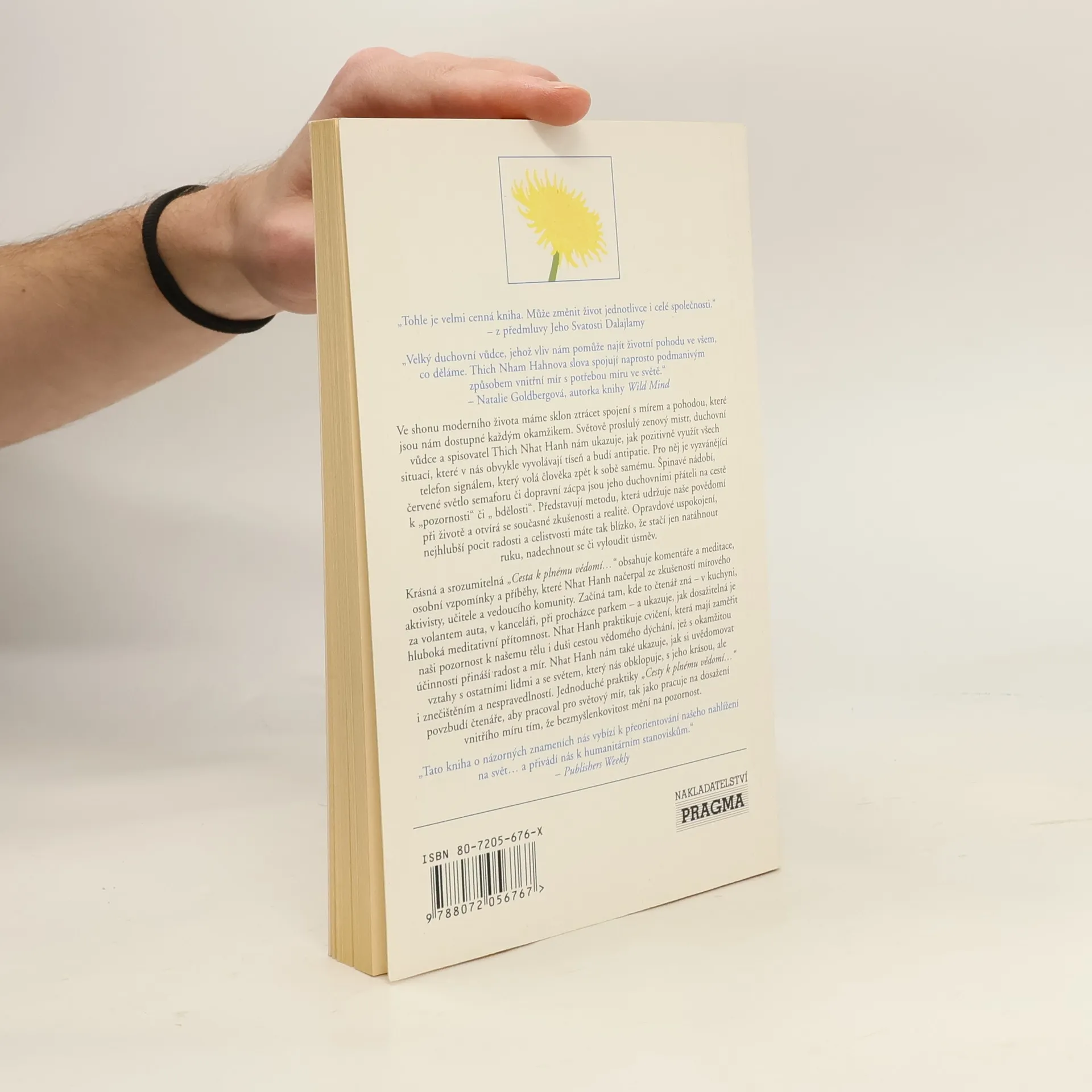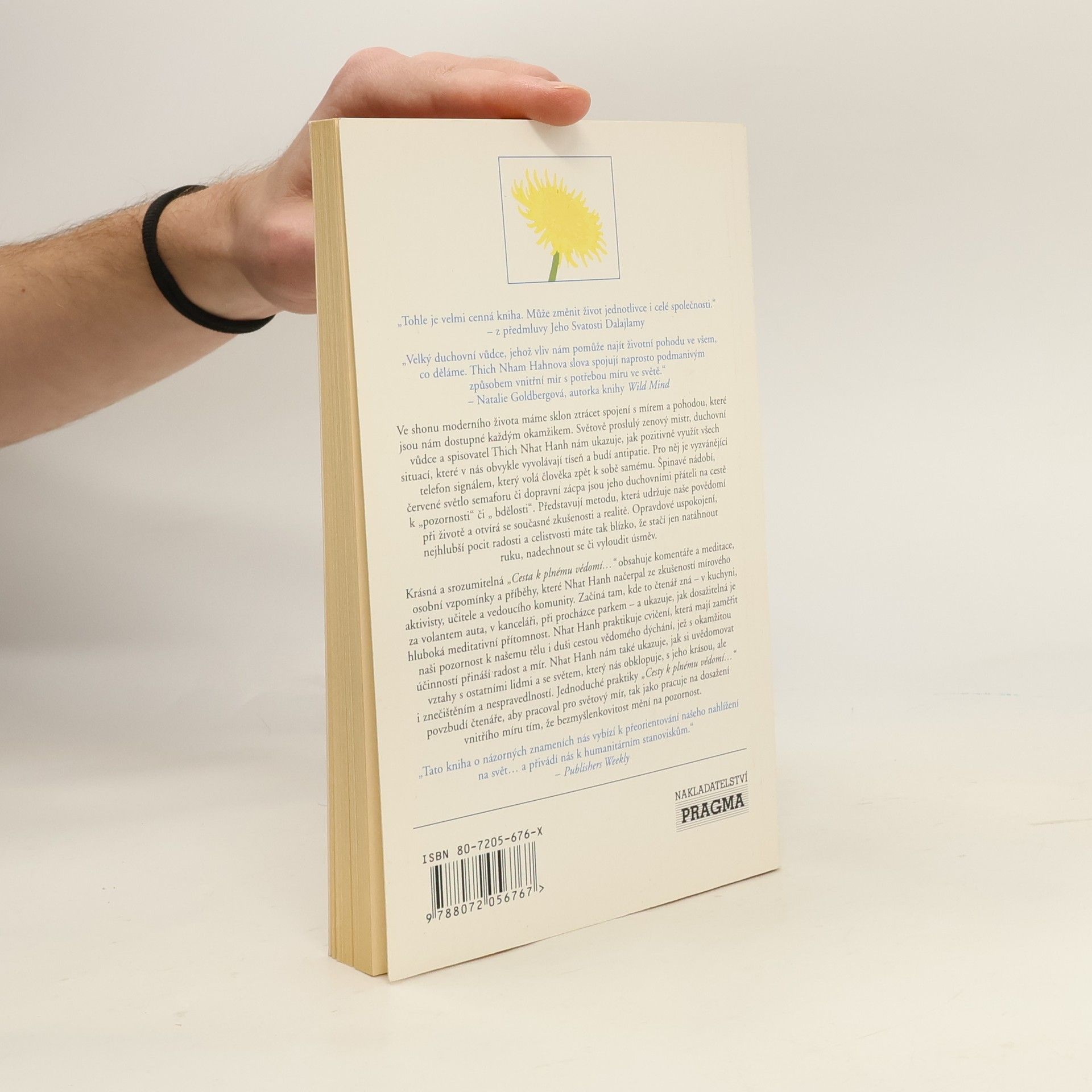 Tohle je velmi cenná kniha. Může změnit život jednotlivce i celé společnosti.“ – z předmluvy Jeho Svatosti Dalajlamy. Ve shonu moderního života máme sklon ztrácet spojení s mírem a pohodou, které jsou nám dostupné každým okamžikem. Světově proslulý zenový mistr, duchovní vůdce a spisovatel Thich Nhat Hanh nám ukazuje, jak pozitivně využít všech situací, které v nás obvykle vyvolávají tíseň a budí antipatie. Začíná tam, kde to čtenář zná – v kuchyni, za volantem auta, v kanceláři, při procházce parkem – a ukazuje, jak dosažitelná je hluboká meditativní přítomnost. Praktikuje cvičení, která mají zaměřit naši pozornost k našemu tělu i duši cestou vědomého dýchání, jež s okamžitou účinností přináší radost a mír a také ukazuje, jak si uvědomovat vztahy s ostatními lidmi a se světem, který nás obklopuje, s jeho krásou, ale i znečištěním a nespravedlností.