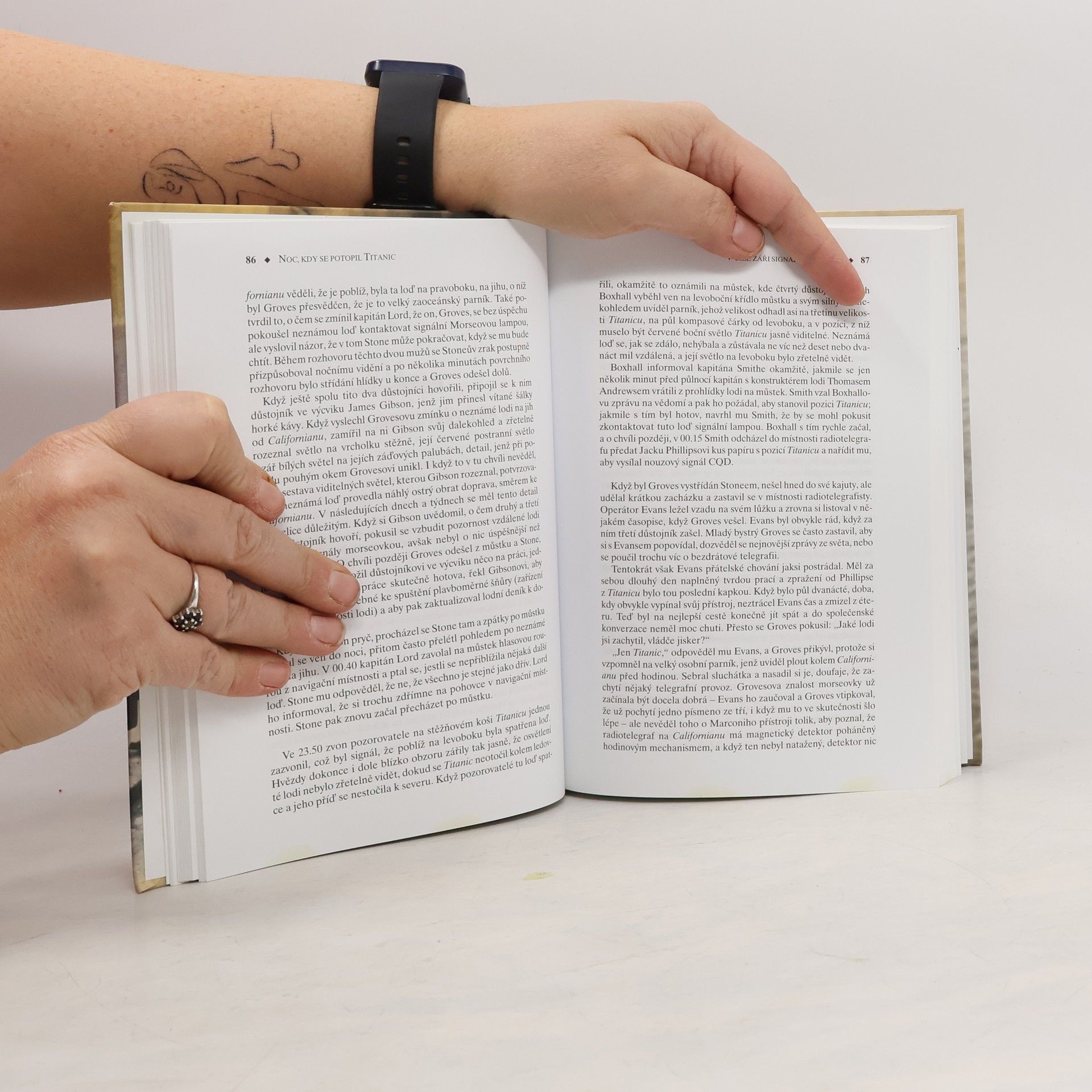 Kniha se zaměřuje na tragickou událost před 100 lety, přičemž místo podrobného popisu potápějící se lodi se soustředí na lodě, které byly nejblíže katastrofě, a to jak na ty, které se zapojily do záchrany (CARPATHIA), tak na ty, které se nezapojily (CALIFORNIAN), a na důvody tohoto rozhodnutí. Autor se snaží najít odpověď na otázku, proč bezpečnostní předpisy selhaly a proč nebylo možné zachránit všechny trosečníky, což bylo reálně možné. Po úvodní kapitole o nepříznivých povětrnostních podmínkách následují kapitoly věnované lodím CARPATHIA a CALIFORNIAN a jejich kapitánům. Důležitá kapitola se zaměřuje na bílé světlice, které TITANIC vystřeloval jako tísňový signál, a na hypotézy, proč je kapitán CALIFORNIANU a jeho důstojníci nepochopili jako signál v nouzi. Následuje popis záchranné akce CARPATHIE a událostí po jejím připlutí do USA. Závěrečné kapitoly se věnují vyšetřování v USA a Británii. V epilogu autor líčí další osudy rejdařství a dopad katastrofy na osobní lodní dopravu. Kniha je unikátní v českém kontextu, neboť se zaměřuje na "odvrácenou" stranu katastrofy a přináší nové informace, které dosud nebyly v češtině reflektovány.