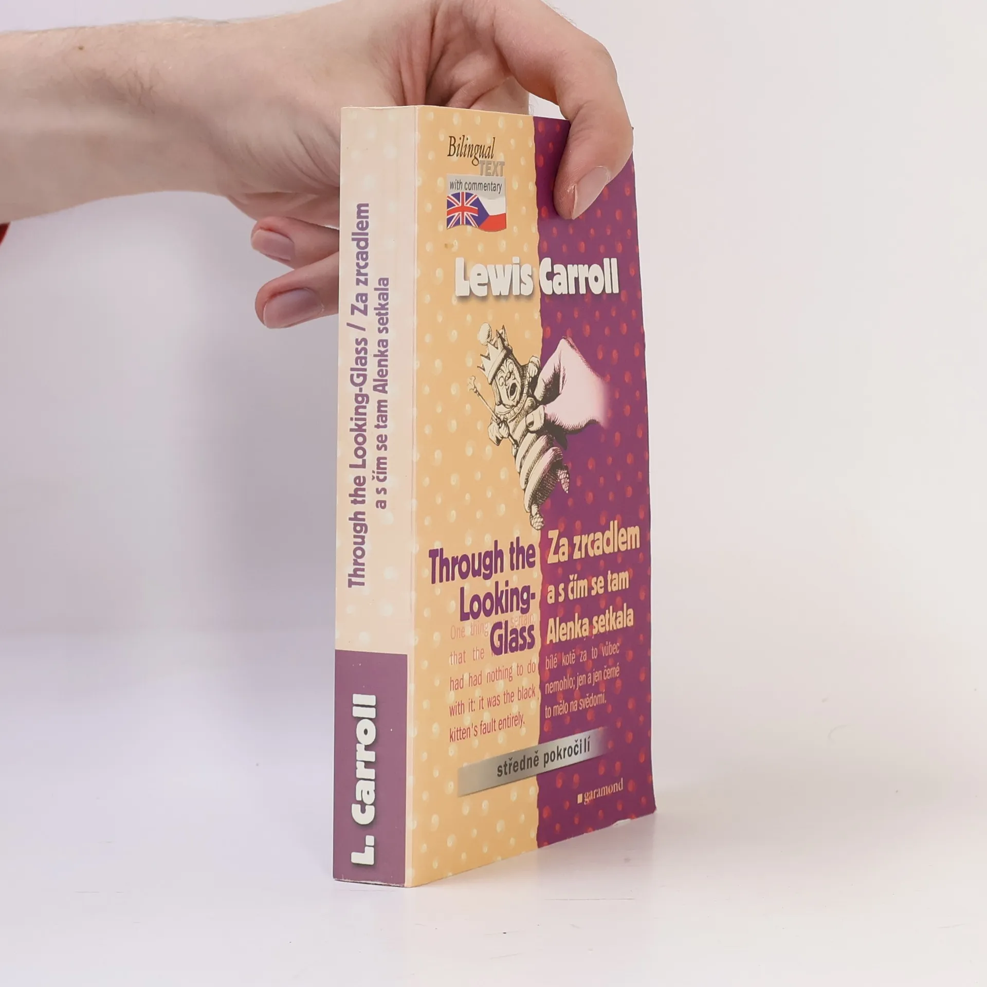 Anglický text Za zrcadlem a s čím se tam Alenka setkala je určen pro středně pokročilé. Bilingvní texty, součást moderní výuky jazyků, nabízejí. * učení přirozeným způsobem: přímým kontaktem s cizím jazykem * okamžitou zpětnou vazbu na mateřský jazyk porovnáním s překlady renomovaných překladatelů * lexikální a gramatický komentář pod čarou * slovní zásobu v kontextu * přímý kontakt s literárními díly v originále a v nezkrácené podobě * autentický text jako motivační element