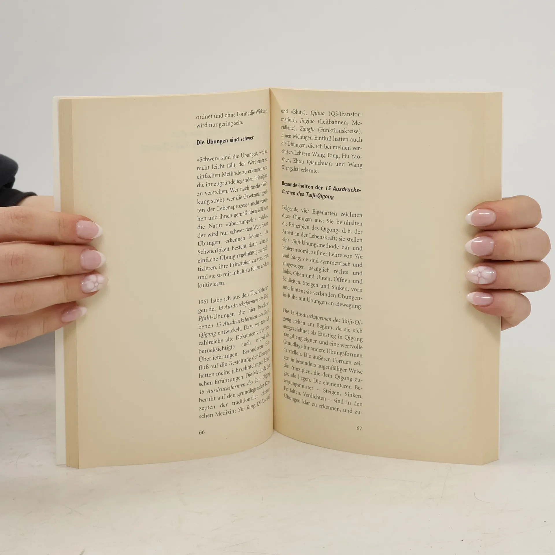 Unter dem Oberbegriff Qigong werden vielfältige körperliche Übungssysteme zusammengefaßt, deren Gemeinsamkeit die Stärkung der Lebenskraft ist, also der Vorbeugung von Krankheiten, der generellen Gesunderhaltung und Kräftigung, der konkreten Behandlung von Krankheiten und der Linderung von Schmerzen. Beim Üben von Qigong geben wir durch Bewegungen und Imagination Impulse und Signale an unseren Organismus und beeinflussen damit unsere Körperfunktionen und unseren Geist. Richtig verstanden ist Qigong Körper- und Geisteskultur zugleich. Um Qigong leicht in den Tagesablauf zu integrieren, werden aus den vier klassischen Formen - Acht Brokate, Stehen wie eine Säule, Spiel der Fünf Tiere und den 15 Formen des Tai-Ji - kleine Übungszyklen zusammengestellt. Diese Auswahl ermöglicht demjenigen, der nicht genug Zeit für die vollständigen Formen hat, kurze und trotzdem effektive Übungszeiten.