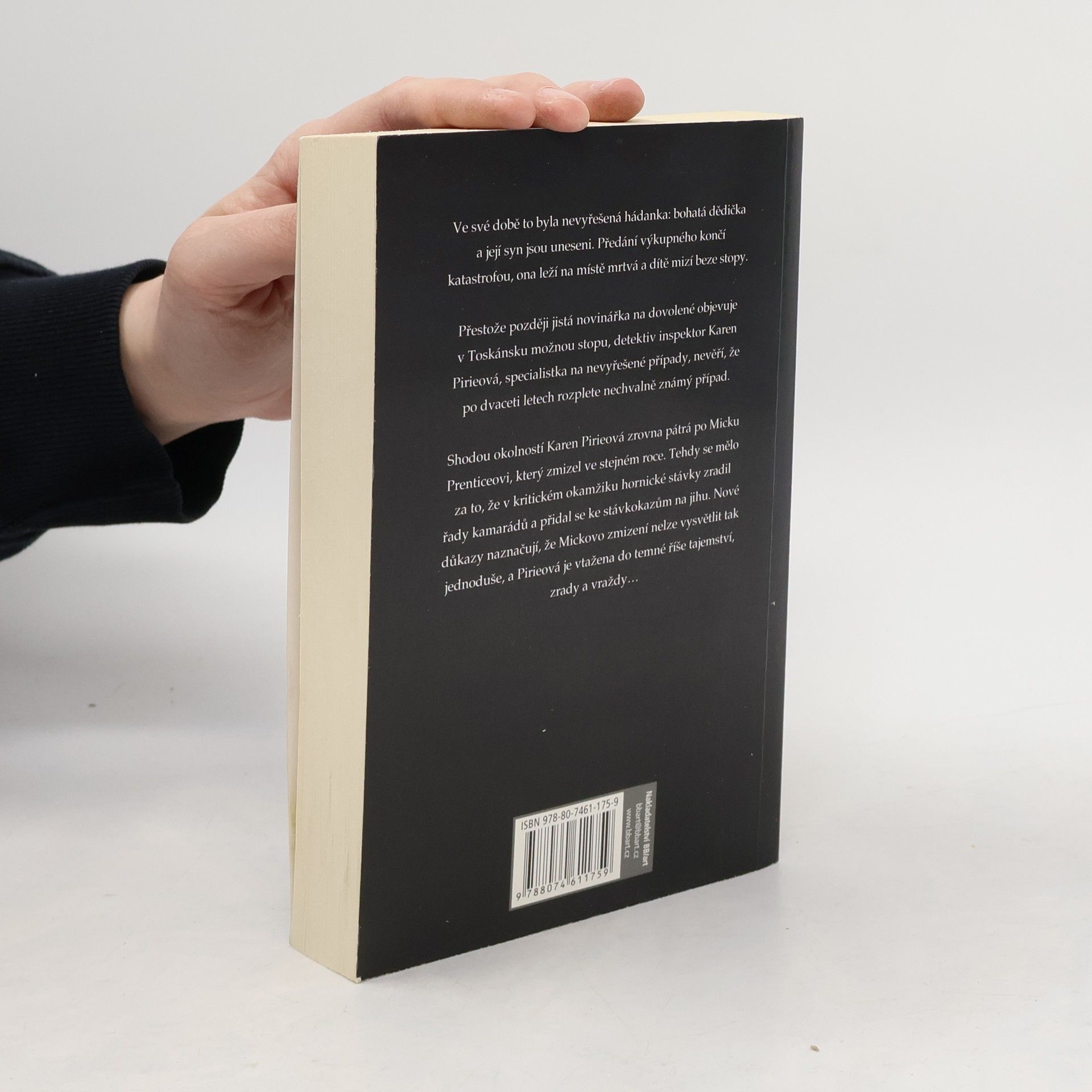 Ve své době to byla nevyřešená hádanka: bohatá dědička a její syn jsou uneseni. Neodborně odvedené předání výkupného končí katastrofou, ona leží na místě mrtvá a dítě mizí beze stopy. Ani specialistka na nevyřešené případy, detektiv inspektor Karen Pirieová, nemyslí, že po dvaceti letech rozplete nechvalně známý případ, i když novinářka na dovolené v Toskánsku objevuje možnou stopu. Shodou okolností je Karen zrovna požádána o vypátrání Micka Prentice, který zmizel ve stejném roce. Tehdy se mělo za to, že v kritickém okamžiku hornické stávky zradil řady kamarádů a přidal se ke stávkokazům na jihu. Nové důkazy naznačují, že Mickovo zmizení nelze vysvětlit tak jednoduše, a Karen je vtažena do temné říše tajemství, zrady a vraždy...