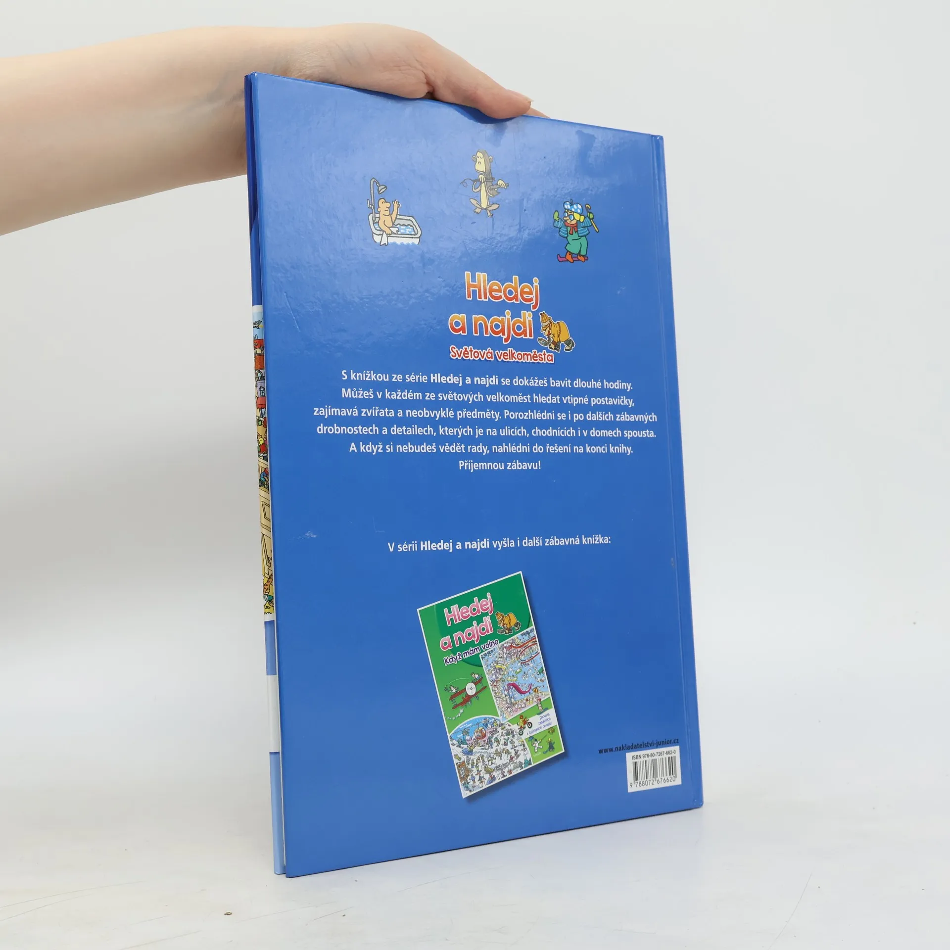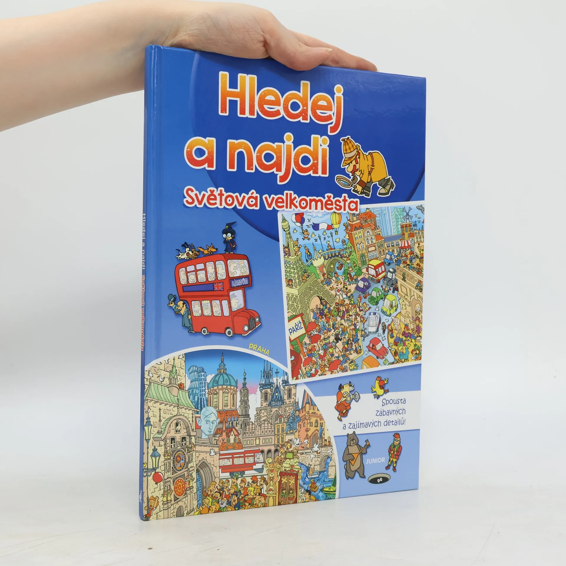 Navštívil jsi už naše hlavní město Prahu? Co tě zaujalo nejvíc? Pražský hrad, starobylé sochy na Karlově mostě, Staroměstské náměstí s orlojem nebo Petřínská rozhledna? V knížce ze série Hledej a najdi, navštívíš i další světová velkoměsta. Můžeš v každé metropoli hledat vtipné postavičky, zajímavá zvířata a neobvyklé předměty. Porozhlédni se i po dalších zábavných drobnostech a detailech, kterých je na ulicích, chodnících i v domech spousta.