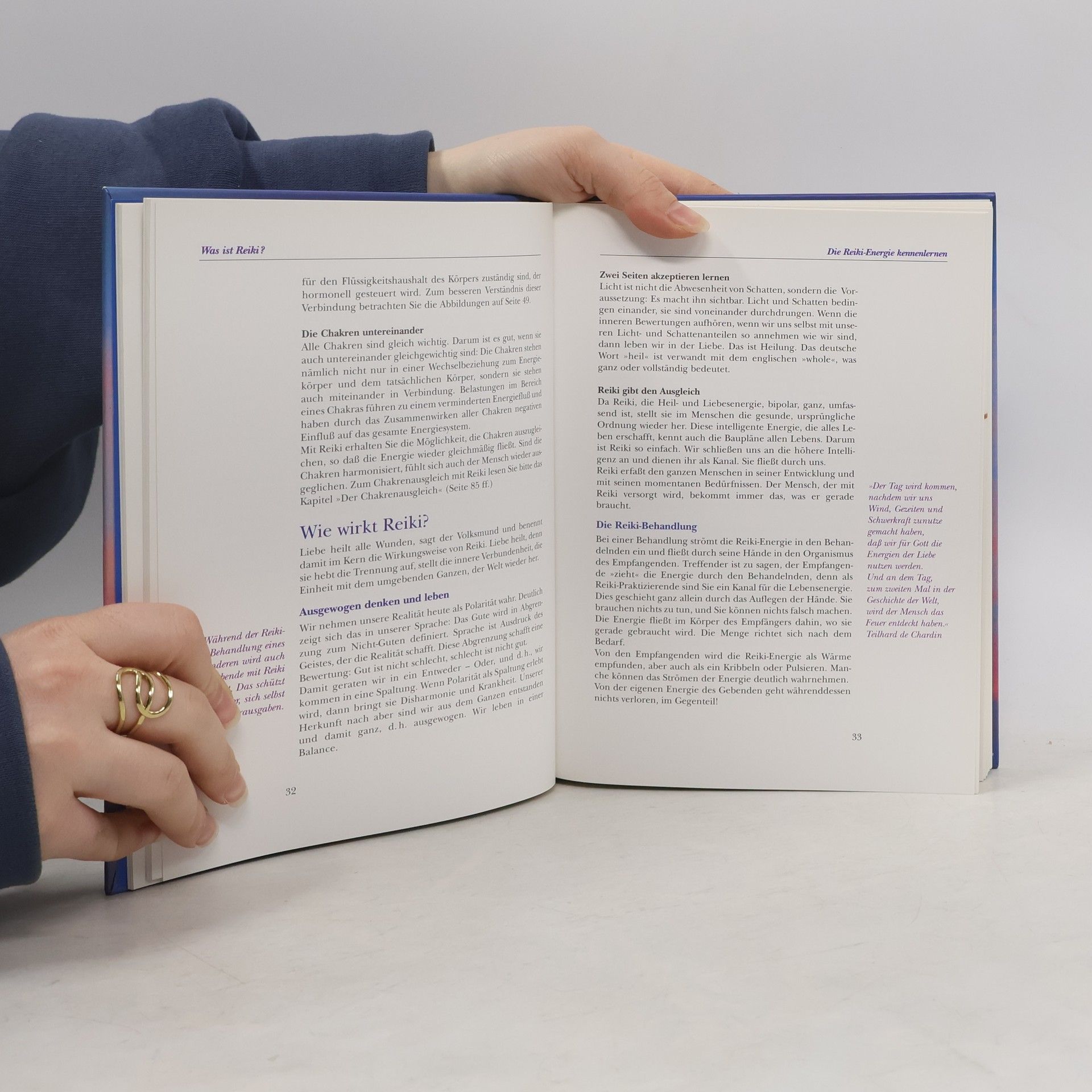 Reiki, japanisch für „universelle Lebensenergie“, ist ein 2500 Jahre alter, meditativer Weg zur Heilung von Körper und Seele, der Harmonie mit der Schöpfung fördert. Durch das Auflegen der Hände in bestimmten Positionen wird positive Lebensenergie kanalisiert, die den Körper zur natürlichen Selbstheilung anregt. Reiki hilft, Energieblockaden zu lösen, entspannt, stärkt die Abwehrkräfte und entgiftet den Körper. Der Ratgeber führt verständlich in die vier Grade des religionsübergreifenden Reiki nach Dr. Mikao Usui ein und bietet ein Schritt-für-Schritt-Programm für diese sanfte, ganzheitliche Therapie. Es werden Kombinationsmöglichkeiten mit anderen naturheilkundlichen Verfahren aufgezeigt. Der Leser findet Schritt-für-Schritt-Anleitungen für eine vollständige Reiki-Behandlung sowie für spezifische Beschwerden, und es wird präzise dargestellt, wie Reiki bei psychischen und körperlichen Problemen, auch bei Haustieren, angewendet werden kann. Zudem wird eine Reiki-Kurzbehandlung für Gestresste vorgestellt. Farbige Abbildungen und Fotos veranschaulichen die Positionen des Reiki. Erfahrungsberichte und weiterführende Empfehlungen für Musik und Literatur runden das Angebot ab.