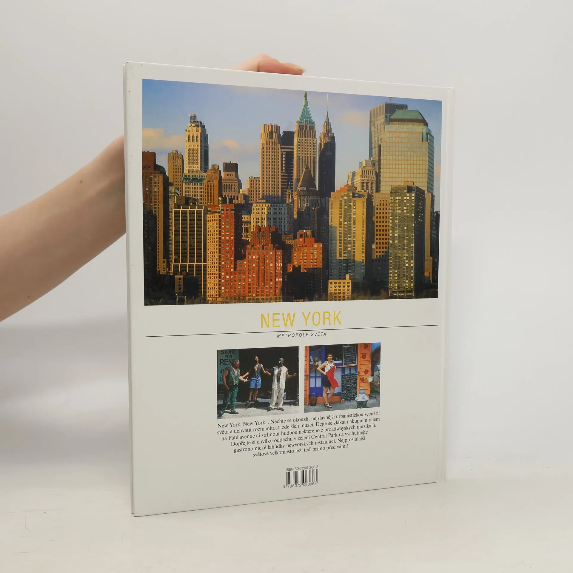 Obrazová publikace doplněná textem, který využívá faktografii jako prostředek k postižení atmosféry největšího amerického města. Součástí publikace je stručný průvodce.Publikace nabízí jen opravdu základní rady a informace o ubytování, dopravě, pozoruhodných místech či kulturních událostech a akcích.Dva orientační plánky (Manhattan, Brooklyn) mají nevhodná měřítka.