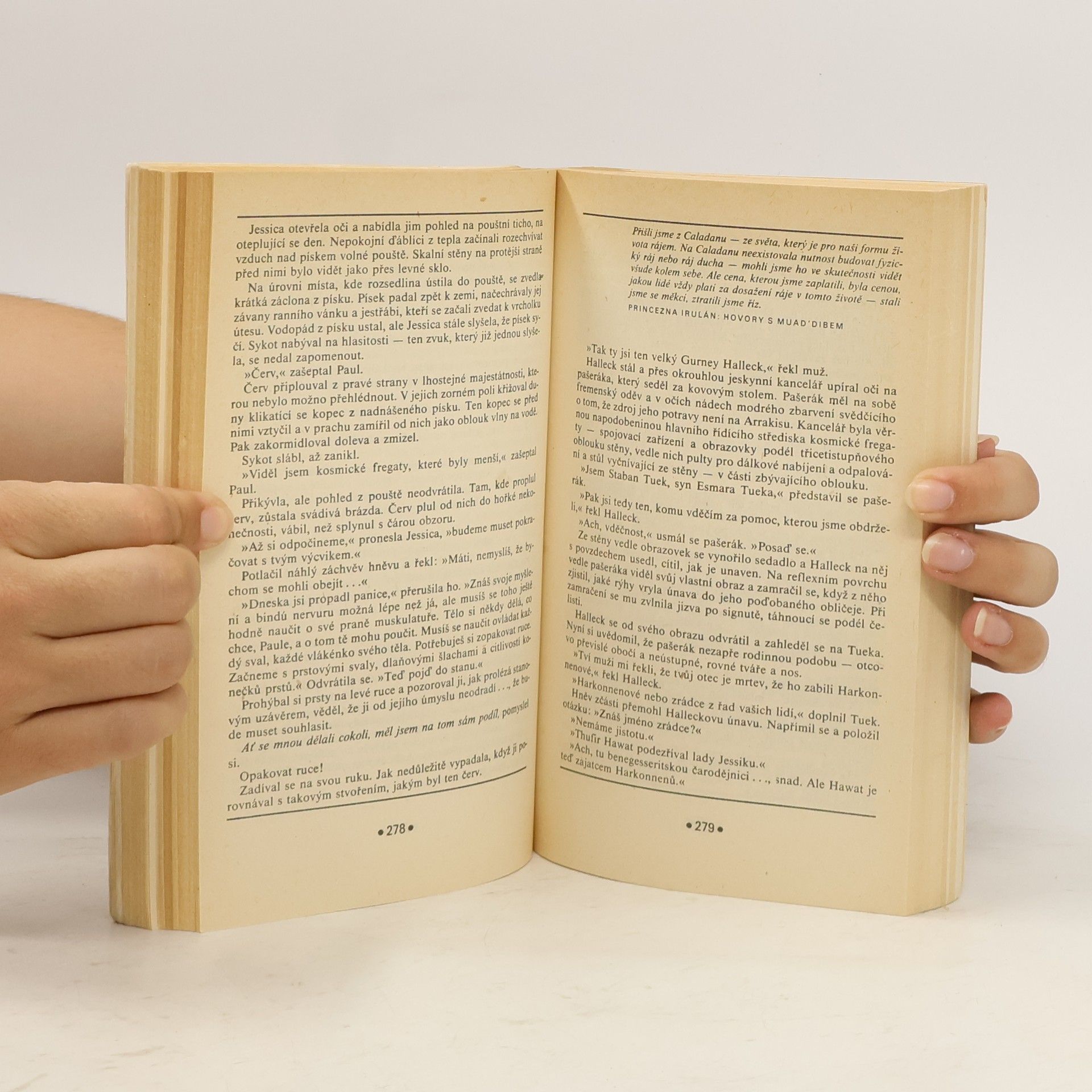 První kniha z cyklu kronik o planetě Duna, fenomenálního díla světové sci-fi. První díl šestidílného sci-fi románu vypráví o pouštní planetě Arrakis s naprostým nedostatkem vody a jediným známým nalezištěm zvláštního koření, které má moc prodloužit lidský život a které poskytuje člověku mimořádné psychické schopnosti. Román vyšel poprvé v roce 1966, získal několik literárních cen (např. Nebula) a měl u čtenářů omračující ohlas. Podle románu vznikl o dvě desetiletí později i film, který natočil známý režisér David Lynch. Frank Herbert svůj úspěch rozvinul v pěti pokračováních zachycujících následné osudy planety Arrakis a boje o její ovládnutí. Šestisvazková sága Duna amerického spisovatele Franka Herberta patří do zlatého fondu světového science fiction.
