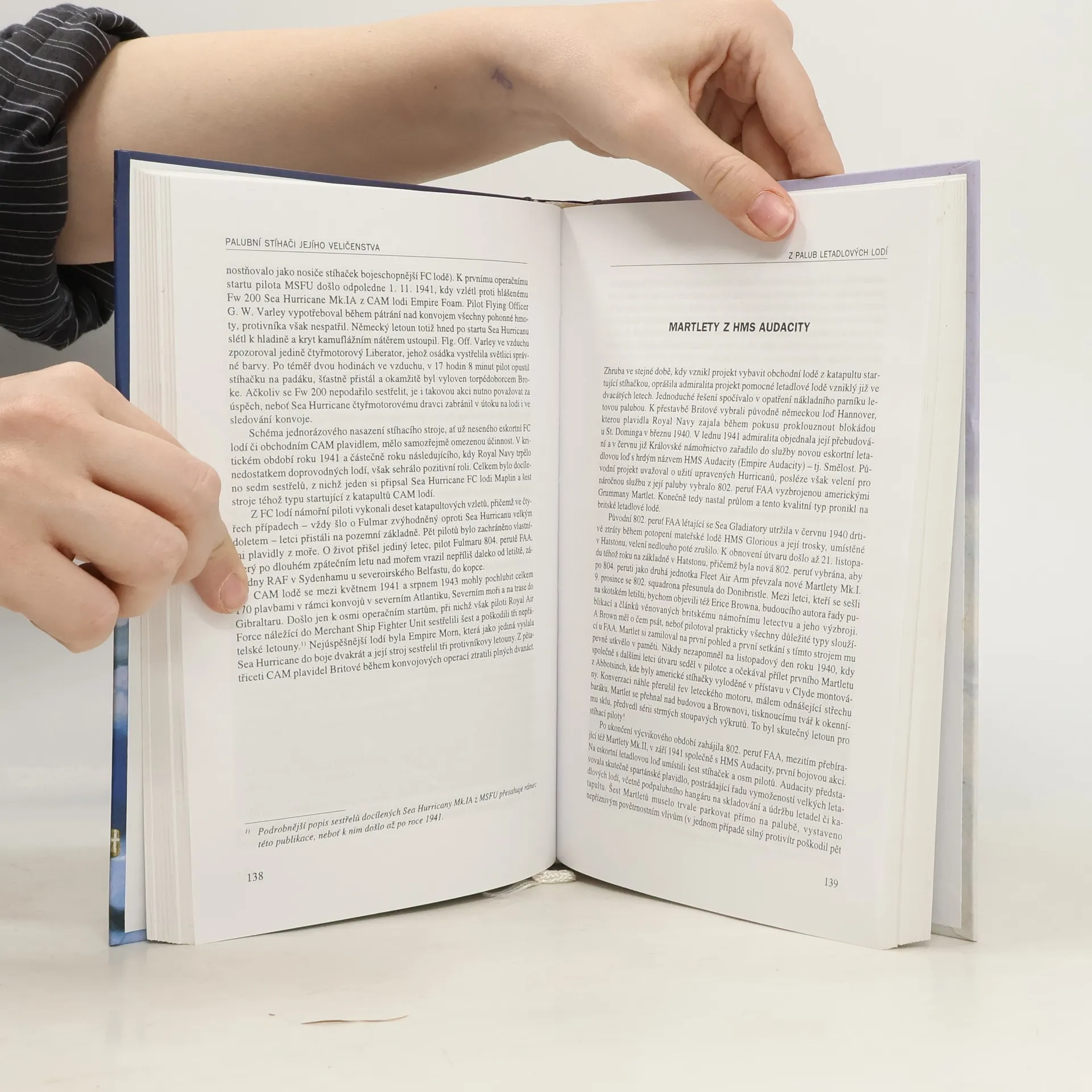 Úvodní část trilogie věnované britskému námořnímu stíhacímu letectvu za II. světové války. Autor v tomto svazku popisuje bojové akce britských námořních stíhačů v Atlantiku, Severním a Středozemním moři, nad britskými ostrovy, Norskem, Afrikou a Balkánem od vypuknutí konfliktu do prosince 1941. Publikace obsahuje monografie užívaných stíhacích letadel, řadu map, nákresy letadel i lodí a barevné kamufláže z dílny Zbyňka Války.