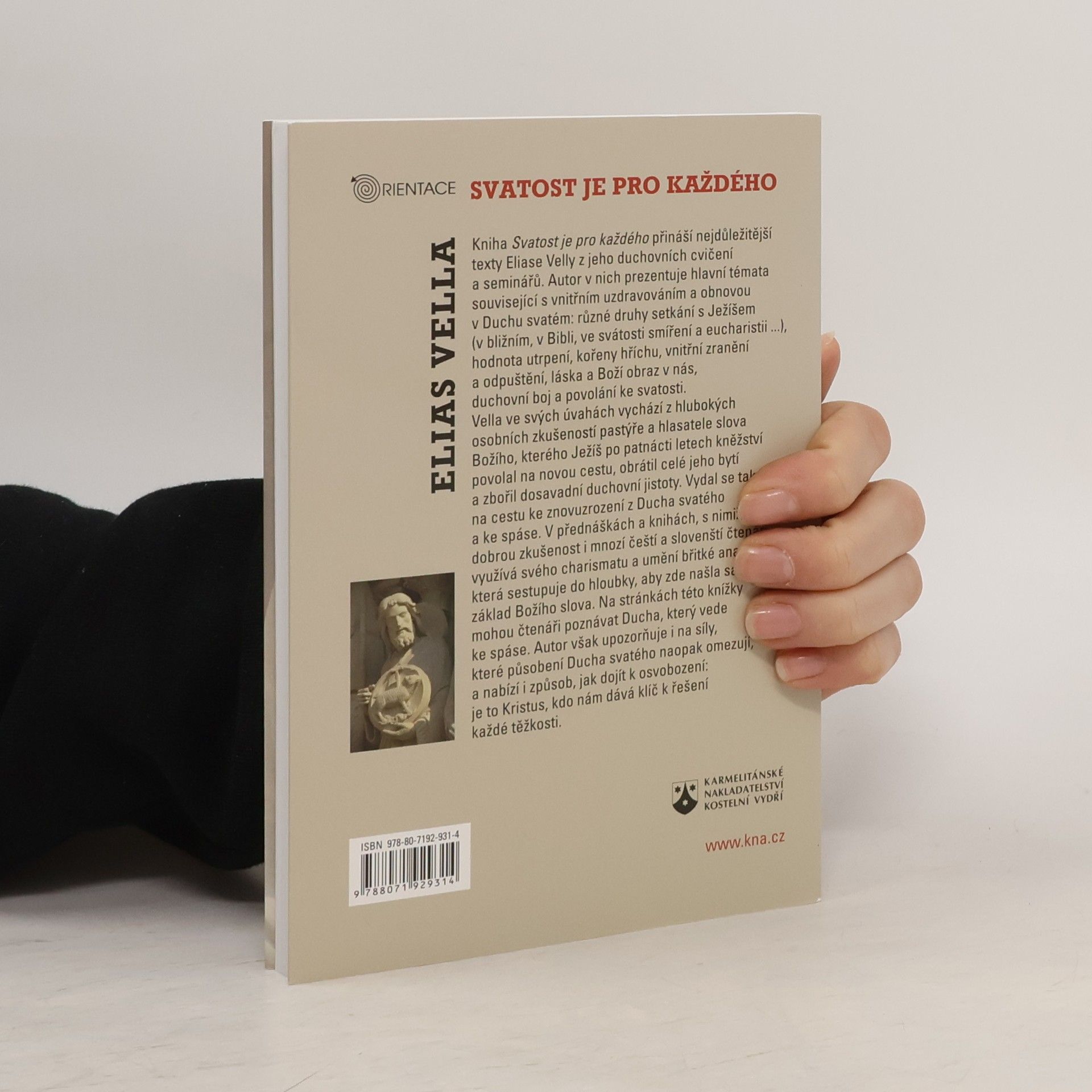Kniha je výborem z textů, které autor sestavil pro svá duchovní cvičení. Vychází v nich z hlubokých osobních zkušeností pastýře a hlasatele slova Božího, kterého po 15 letech kněžství Ježíš povolal na novou cestu, obrací celé jeho bytí a boří duchovní jistoty. Elias Vella se znovu vydal na cestu ke znovuzrození z Ducha svatého a ke spáse. Ve svých přednáškách a knihách využívá svého charismatu a působivě břitké analýzy, která sestupuje do hloubky, kde nalézá samotný základ Božího slova. Na stránkách jeho knihy Svatost je pro každého mohou čtenáři poznávat Ducha, který vede ke spáse. Autor však upozorňuje i na síly, které působení Ducha svatého naopak omezují, a nabízí i způsob, jak se osvobodit: Kristus nám dal klíč k řešení každé těžkosti.