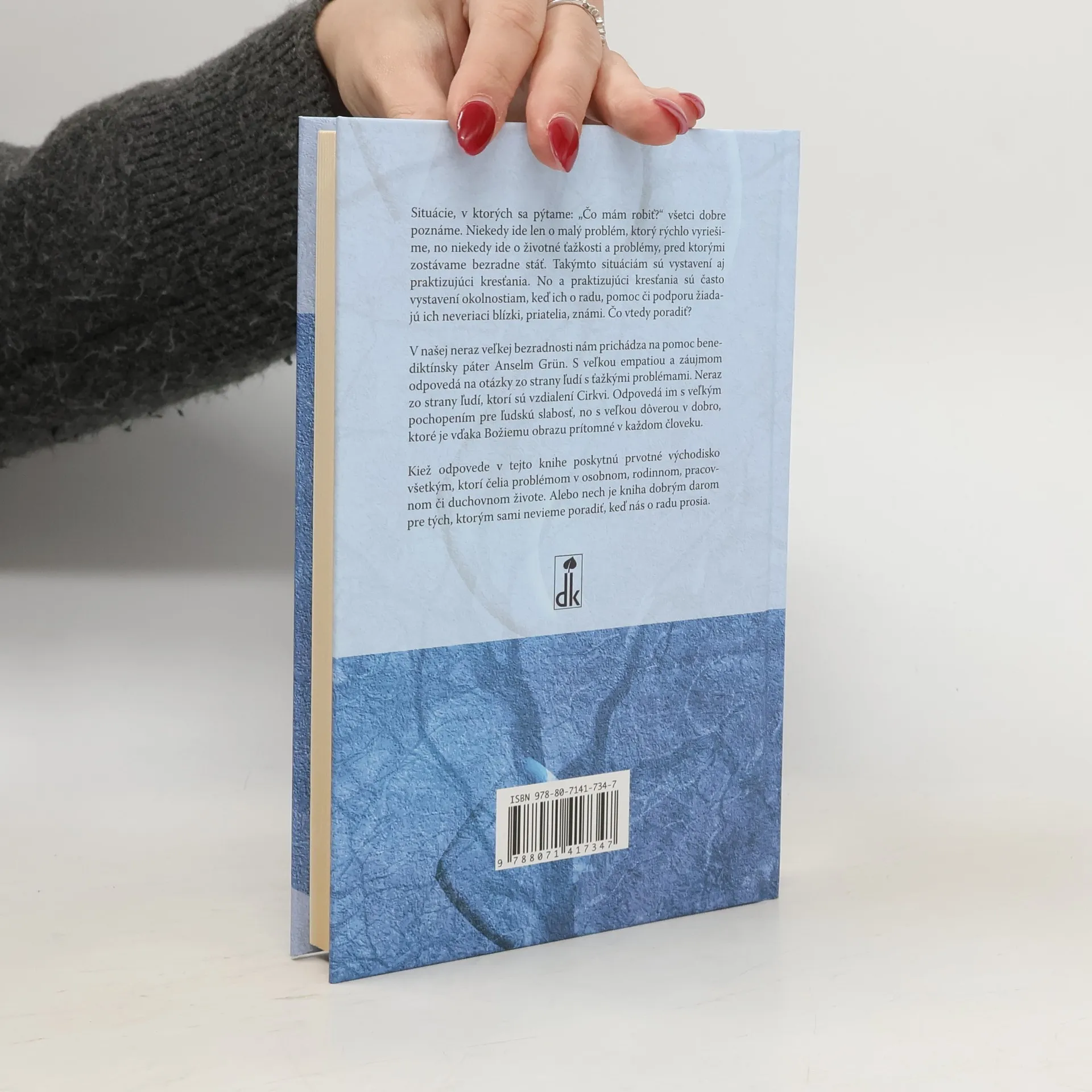 Odpovede na otázky, ktoré kladie život. Situácie, v ktorých sa pýtame: „Čo mám robiť?“ všetci dobre poznáme. Niekedy ide len o malý problém, ktorý rýchlo vyriešime, no niekedy ide o životné ťažkosti a problémy, pred ktorým zostávame bezradne stáť. Takýmto situáciám sú vystavení aj praktizujúci kresťania. No a praktizujúci kresťania sú často vystavení okolnostiam, keď ich o radu, pomoc či podporu žiadajú ich neveriaci blízki, priatelia, známi. Čo vtedy poradiť? V našej neraz veľkej bezradnosti nám prichádza na pomoc benediktínsky páter Anselm Grün. S veľkou empatiou a záujmom odpovedá na otázky zo strany ľudí s ťažkými problémami. Neraz zo strany ľudí, ktorí sú vzdialení Cirkvi. Odpovedá im s veľkým pochopením pre ľudskú slabosť, no s veľkou dôverou v dobro, ktoré je vďaka Božiemu obrazu prítomné v každom človeku. Kiež odpovede v tejto knihe poskytnú prvotné východisko všetkým, ktorí čelia problémom v osobnom, rodinnom, pracovnom či duchovnom živote. Alebo nech je kniha dobrým darom pre tých, ktorým sami nevieme poradiť, keď nás o radu prosia.