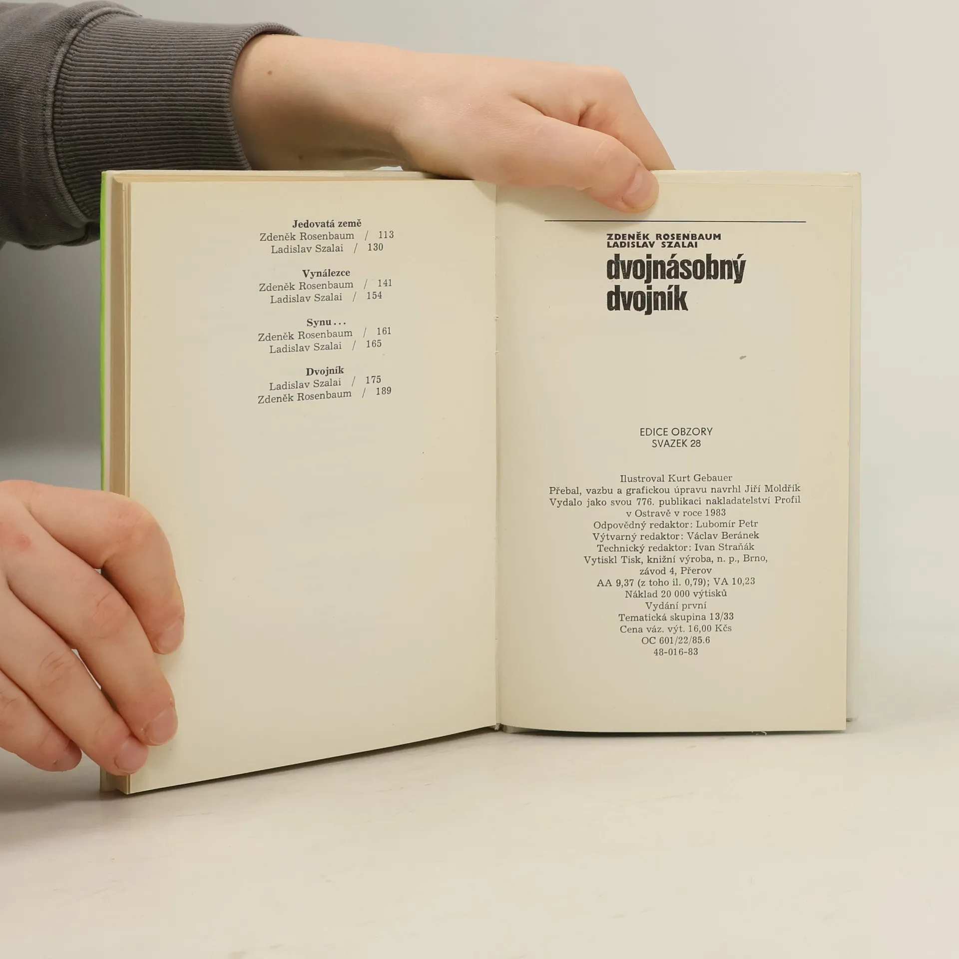 Sestavili Zdeněk Rosenbaum a Ladislav Szalai. Pozn.: Skutečně se jedná o různé povídky různých autorů, byť na stejné téma, stejného názvu. ;-) Kniha Dvojnásobný dvojník (Profil 1983) představovala zajímavý experiment: autoři si zadali deset témat a každý na dané téma napsal povídku.Zatímco Szalaiův přístup byl excentričtější, Rosenbaum tíhl k romantičtější a klasičtější poloze vyprávění. Ve své době byl Dvojnásobný dvojník nadprůměrným přínosem žánru a pozoruhodným SF debutem dvou nových autorů.