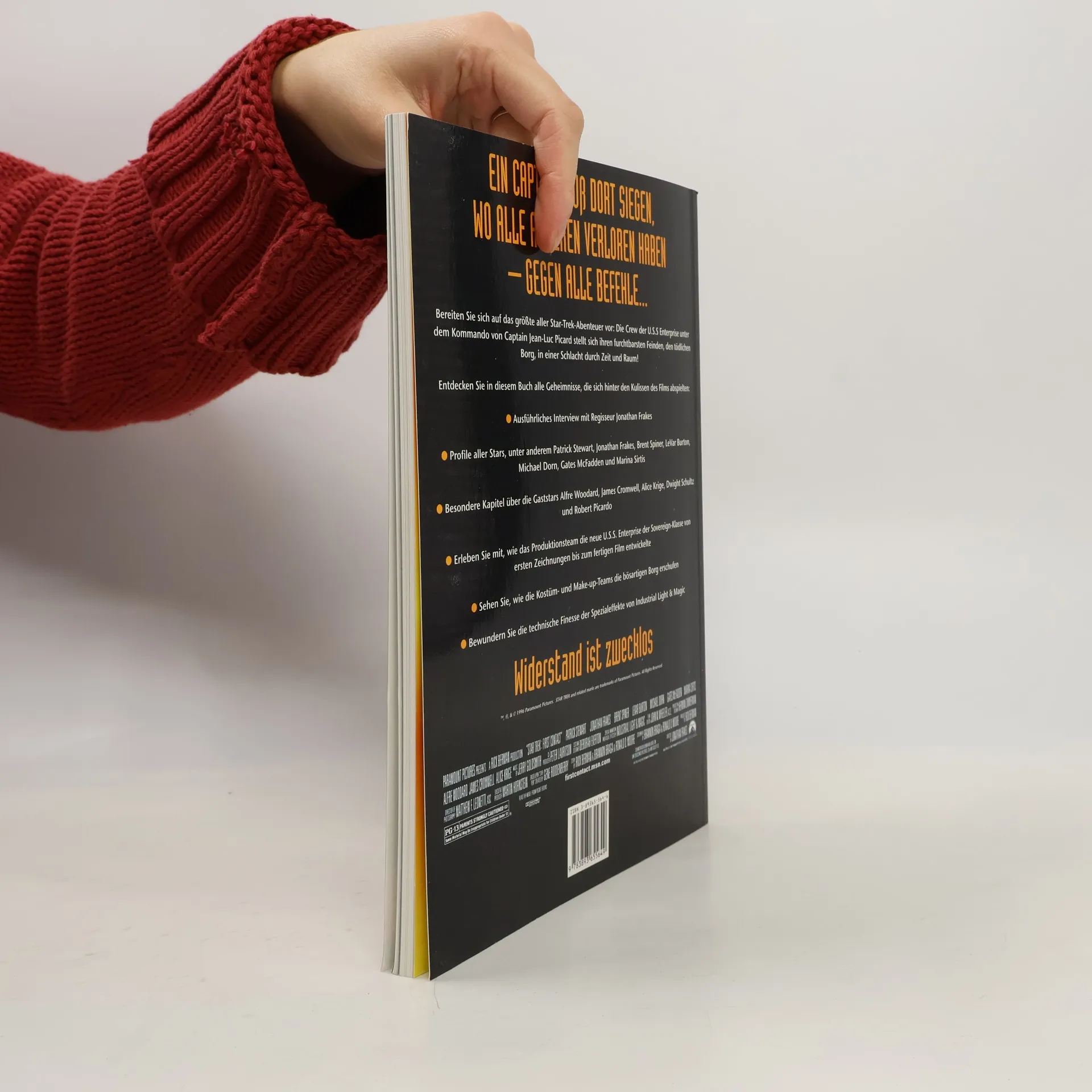 Ein Captain muss dort siegen, wo alle anderen verloren haben - gegen alle Befehle... Bereiten Sie sich auf das größte aller Star-Trek-Abenteuer vor: Die Crew der U.S.S. Enterprise unter dem Kommando von Captain Jean-Luc Picard stellt sich ihren furchtbarsten Feinden, den tödlichen Borg, in einer Schlacht durch Zeit und Raum! Entdecken Sie in diesem Buch alle Geheimnisse, die sich hinter den Kulissen des Films abspielten: -Ausführliches Interview mit Regisseur Jonathan Frakes -Profile aller Stars, unter anderem Patrick Stewart, Jonathan Frakes, Brent Spiner, LeVar Burton, Michael Dorn, Gates McFadden und Marina Sirtis -Besondere Kapitel über die Gaststars Alfre Woodard, James Cromwell, Alice Krige, Dwight Schultz und Robert Picardo -Erleben Sie mit, wie das Produktionsteam die neue U.S.S. Enterprise der Sovereign-Klasse von ersten Zeichnungen bis zum fertigen Film entwickelte -Sehen Sie, wie die Kostüm- und Make-up-Teams die bösartigen Borg erschufen -Bewundern Sie die technische Finesse der Spezialeffekte von Industrial Light & Magic Widerstand ist zwecklos