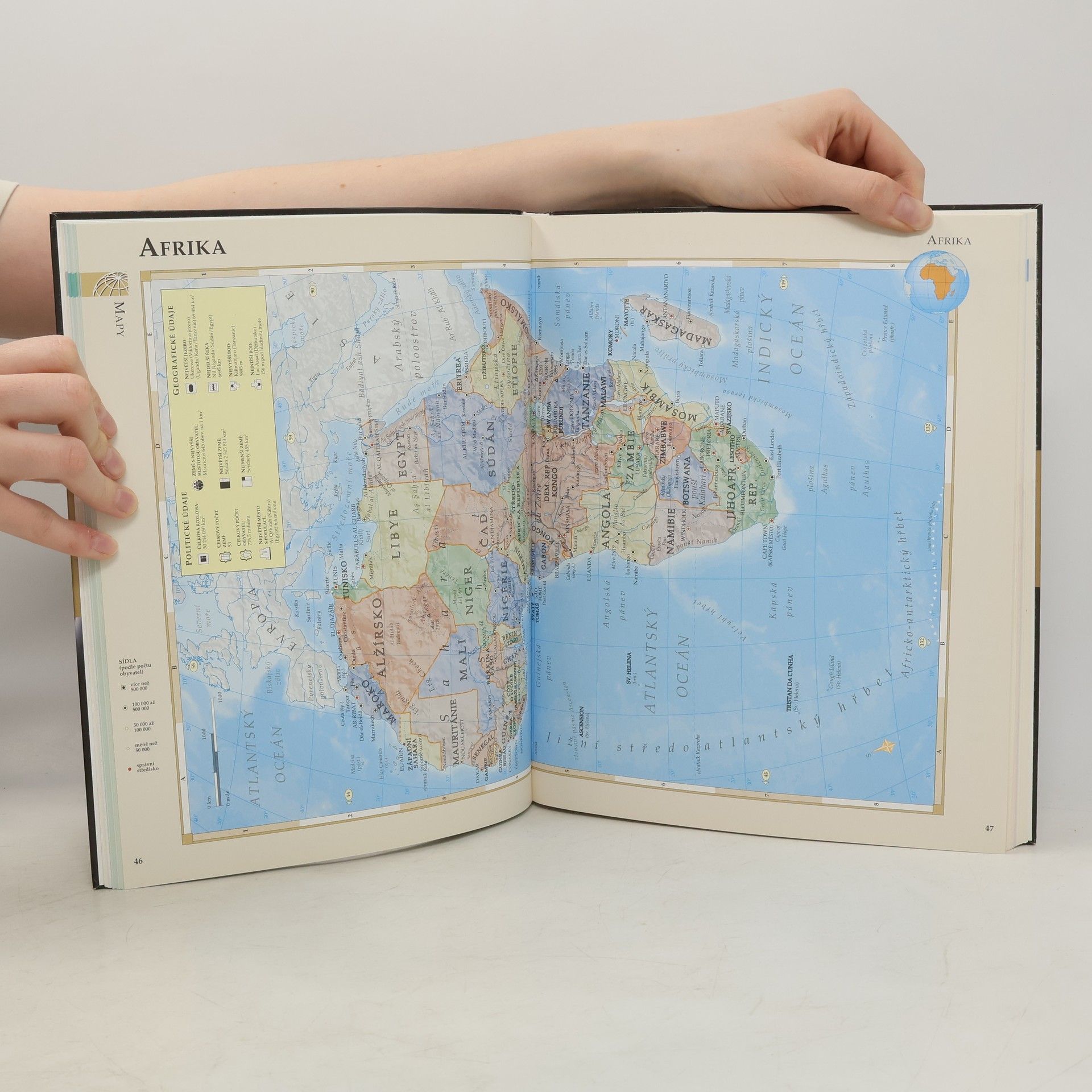 Atlas obsahuje více než 60 map znázorňujících všechny země světa. Větší státy, např. USA, Čína a Rusko, jsou rozděleny do podrobněji zpracovaných regionů. Mapy vytvořené s využitím nejmodernějších kartografických metod zachycují nejdůležitější pozemní komunikace, řeky a lidská sídla. V atlasu najdete aktuální faktografické údaje a podrobný rejstřík s dvaceti tisíci hesly, umožňující rychlé vyhledávání. Nechybí samozřejmě státní vlajky ani statistické profily 193 zemí. Celobarevná publikace.