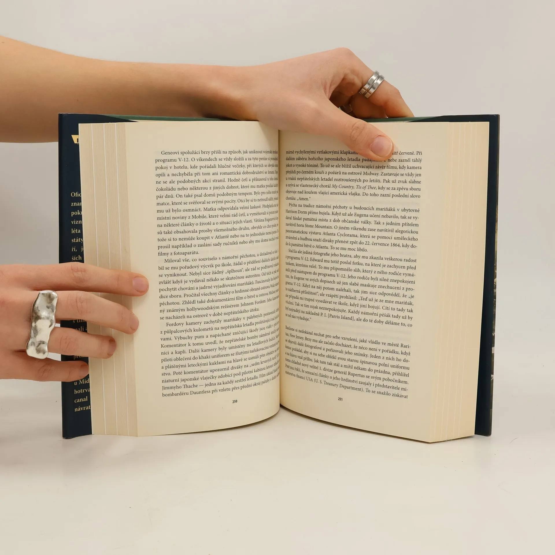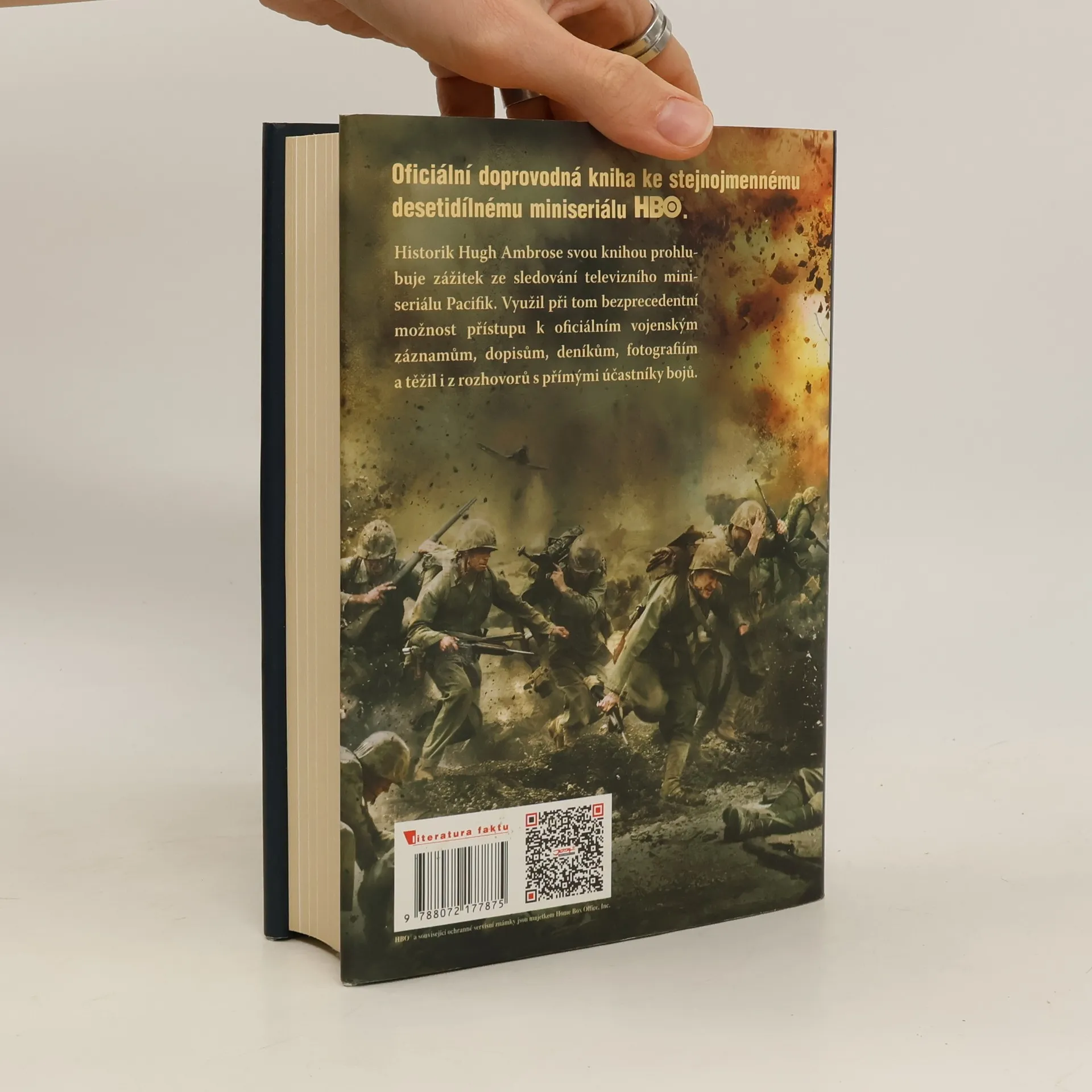 Peklo za oceánem V této odysseji z druhé světové války se prolínají opravdové osudy čtyř amerických mariňáků a jednoho pilota námořního letectva, kteří prošli válečným peklem všech zásadních bojů v Tichomoří — od bitvy s Japonci na Guadalcanalu, přes masakr na ostrově Iwodžima až po krvavé a prudké boje po vylodění na Okinawě na samém konci války. V knize jsou poutavě vylíčeny příběhy mužů, kteří dali v sázku životy, aby bojovali za svou vlast. Byli odveleni na druhý konec světa do války s nepřítelem, jenž upřednostňoval sebevraždu před kapitulací. Tito stateční muži poznali krutost a ponížení v zajateckých táborech, byli svědky nespočetných úmrtí v řadách vojáků i civilistů a za svá válečná ocenění zaplatili často měrou nejvyšší. Hugh Ambrose doplňuje individuální osudy pětice válečných hrdinů televizní série o poznatky načerpané při mnohaletém studiu válečných dokumentů, záznamů, deníků, dopisů a memoárů i při rozhovorech s válečnými veterány. Nabízí čtenářům jedinečný, mnohavrstevný a poutavý pohled na válku v Tichomoří. Ambroseho kniha je unikátní válečnou výpovědí spojující bezprostřední a naléhavé osobní prožitky očitých svědků s historicky přesným popisem přelomových válečných událostí.