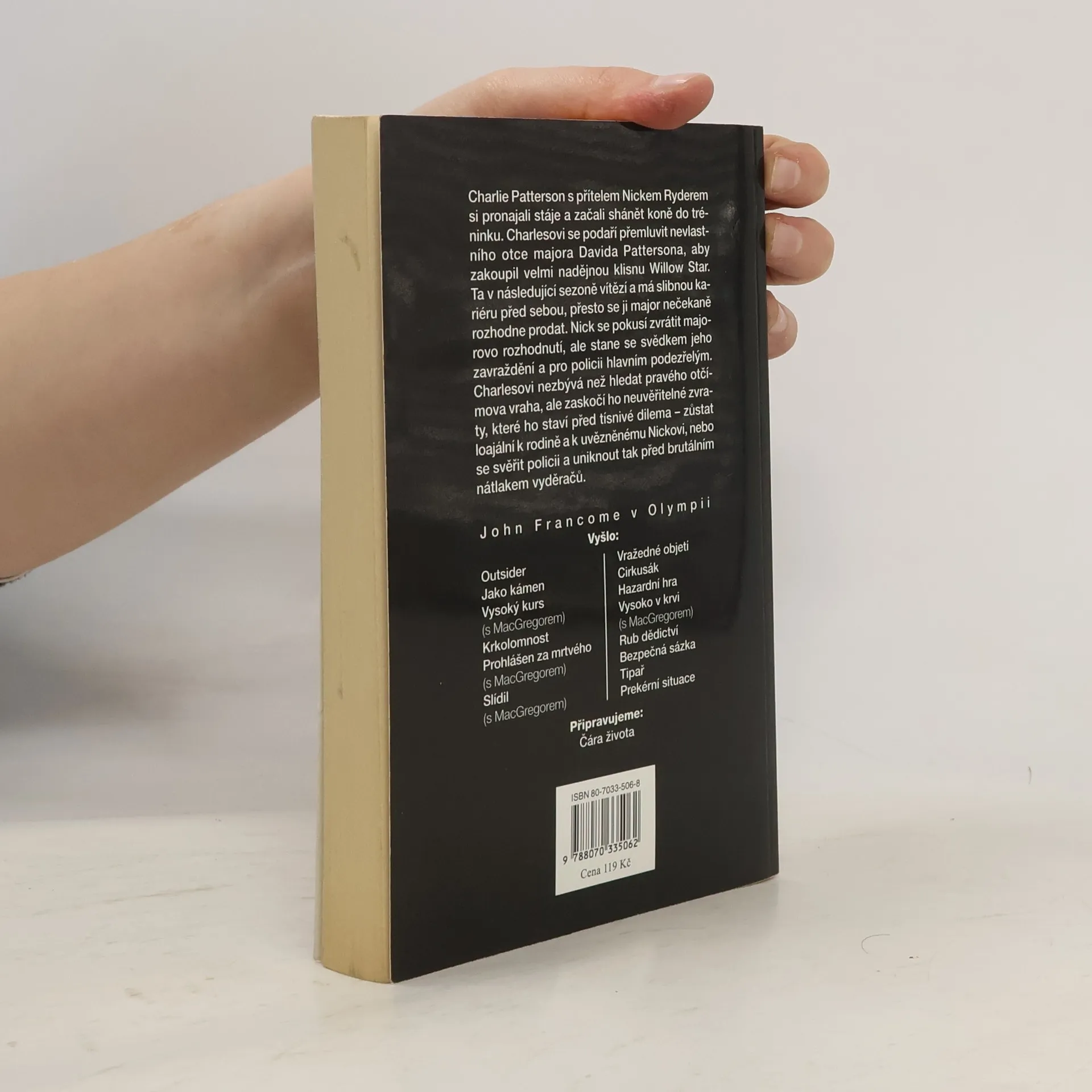 Detektivní román z dostihového prostředí se rozvíjí kolem podvodů a vydírání ve stáji dvou mladých trenérů. Mladá nadějná klisna má ty nejlepší vyhlídky na úspěch v dalších sezónách, přesto se však její skutečný majitel nečekaně rozhodne ji prodat. Oba přátelé se snaží majitelovo rozhodnutí zvrátit, ten je však krátce nato zavražděn před očima jednoho z nich, jenž se samozřejmě okamžitě stane hlavním podezřelým. Jeho přítel musí za dramatických okolností nejen najít skutečného vraha, ale zajistit i důkazy, které ho přivedou za mříže.