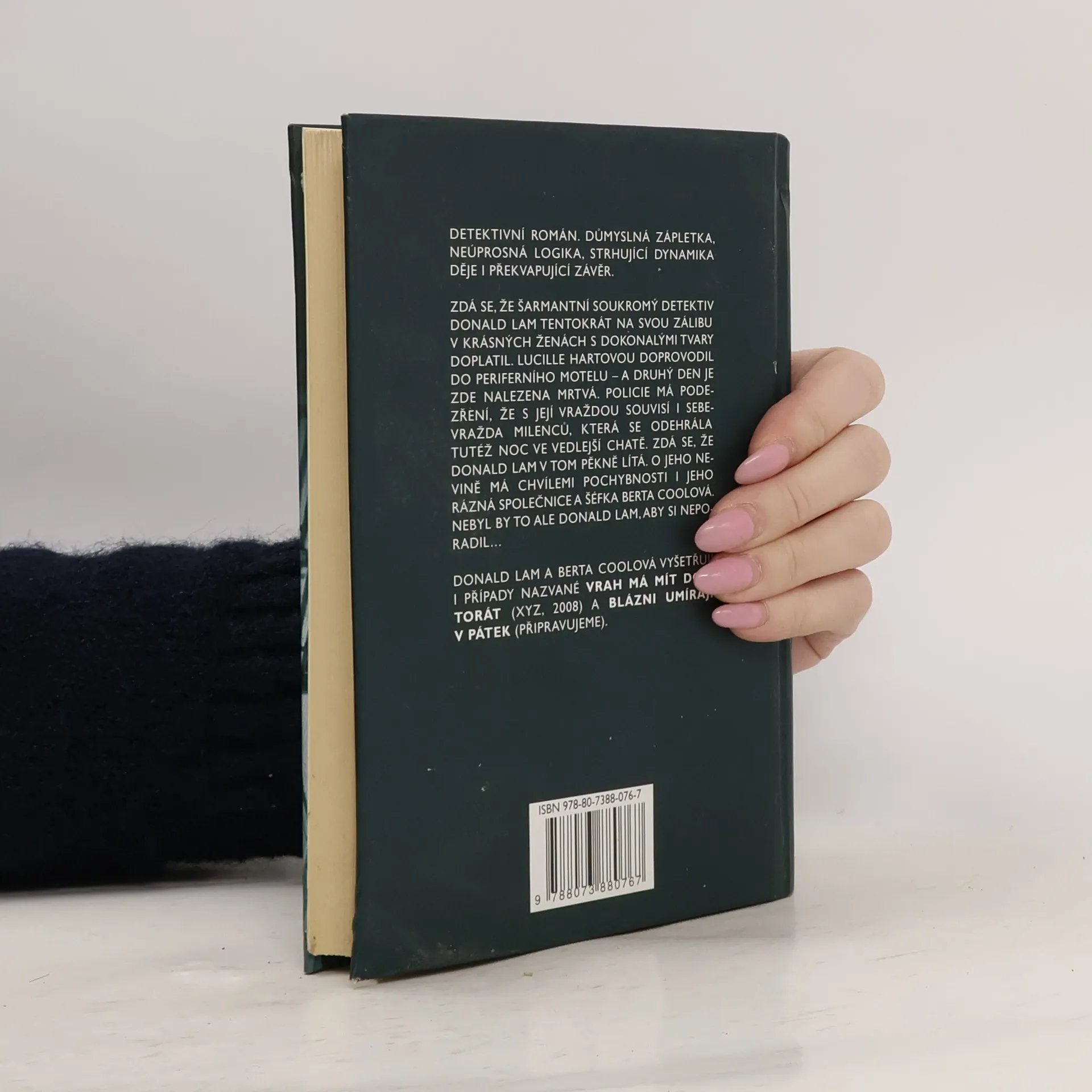 Důmyslná zápletka, neúprosná logika, strhující dynamika děje i překvapující závěr. Zdá se, že šarmantní soukromý detektiv Donald Lam tentokrát na svou zálibu v krásných ženách s dokonalými tvary doplatil. Lucille Hartovou doprovodil do periferního motelu - a druhý den je zde nalezena mrtvá. Policie má podezření, že s její vraždou souvisí i sebevražda milenců, která se odehrála tutéž noc ve vedlejší chatě. Zdá se, že Donald Lam v tom pěkně lítá. O jeho nevině má chvílemi pochybnosti i jeho rázná společnice a šéfka Berta Coolová. Nebyl by to ale Donald Lam, aby si neporadil…