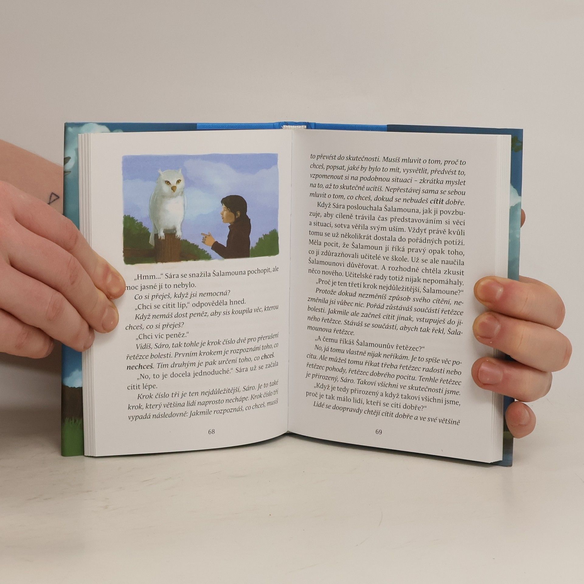 O věčném přátelství dvou blízkých duší. Sára je plachá, uzavřená desetiletá dívka, která není příliš šťastná. Má zlomyslného bratra, který ji neustále provokuje, kruté a bezcitné spolužáky, a ve škole ji to moc nebaví. Je zkrátka jako mnoho jiných dnešních dětí. To všechno se změní, když potká Šalamouna, moudrou nadpozemskou sovu, která jí ukáže, jak se na svět dívat jinak, očima bezvýhradné lásky. Naučí Sáru, jak přijímat čistou, pozitivní energii. Sára poprvé vidí, kým skutečně je a jak neomezené možnosti má. Jako čtenáři si uvědomíte, že je to mnohem víc než dětská knížka. Je to návod, jak získat radost a štěstí, které jsou naším vrozeným právem. Budete se Sárou sdílet její vzlety i propady na cestě k většímu naplnění a uvědomíte si, že takové dítě je v každém z nás.