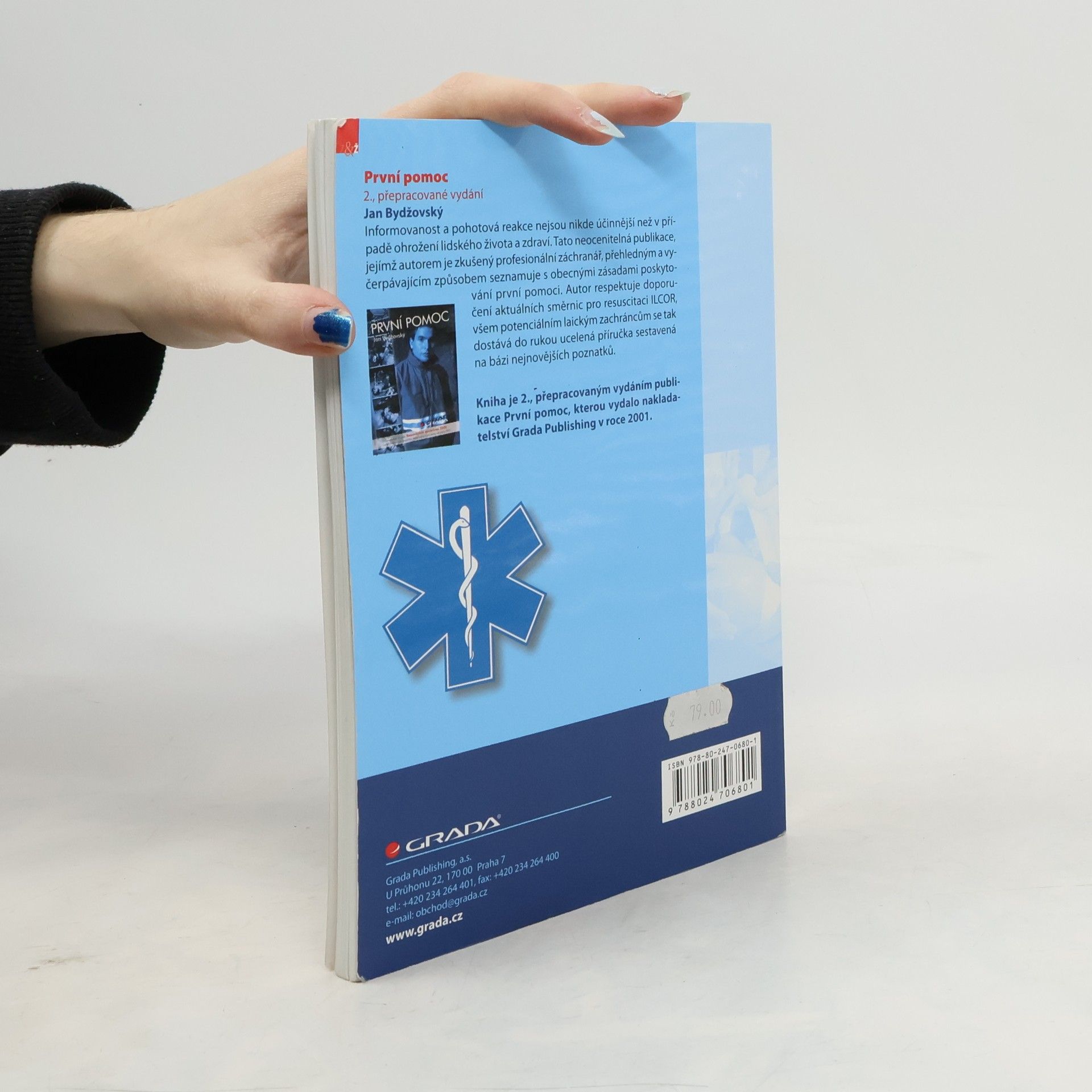 Přehledná příručka seznamuje s obecnými zásadami poskytování první pomoci, které by měl znát každý z nás. Tato neocenitelná publikace, jejímž autorem je zkušený profesionální záchranář, přehledným a vyčerpávajícím způsobem seznamuje s obecnými zásadami poskytování první pomoci. Autor respektuje doporučení aktuálních směrnic pro resuscitaci ILCOR, všem potenciálním laickým zachráncům se tak dostává do rukou ucelená příručka sestavená na bázi nejnovějších poznatků. Zpracováno podle Resuscitation guidelines – nových směrnic pro resuscitaci doporučených pro výuku.