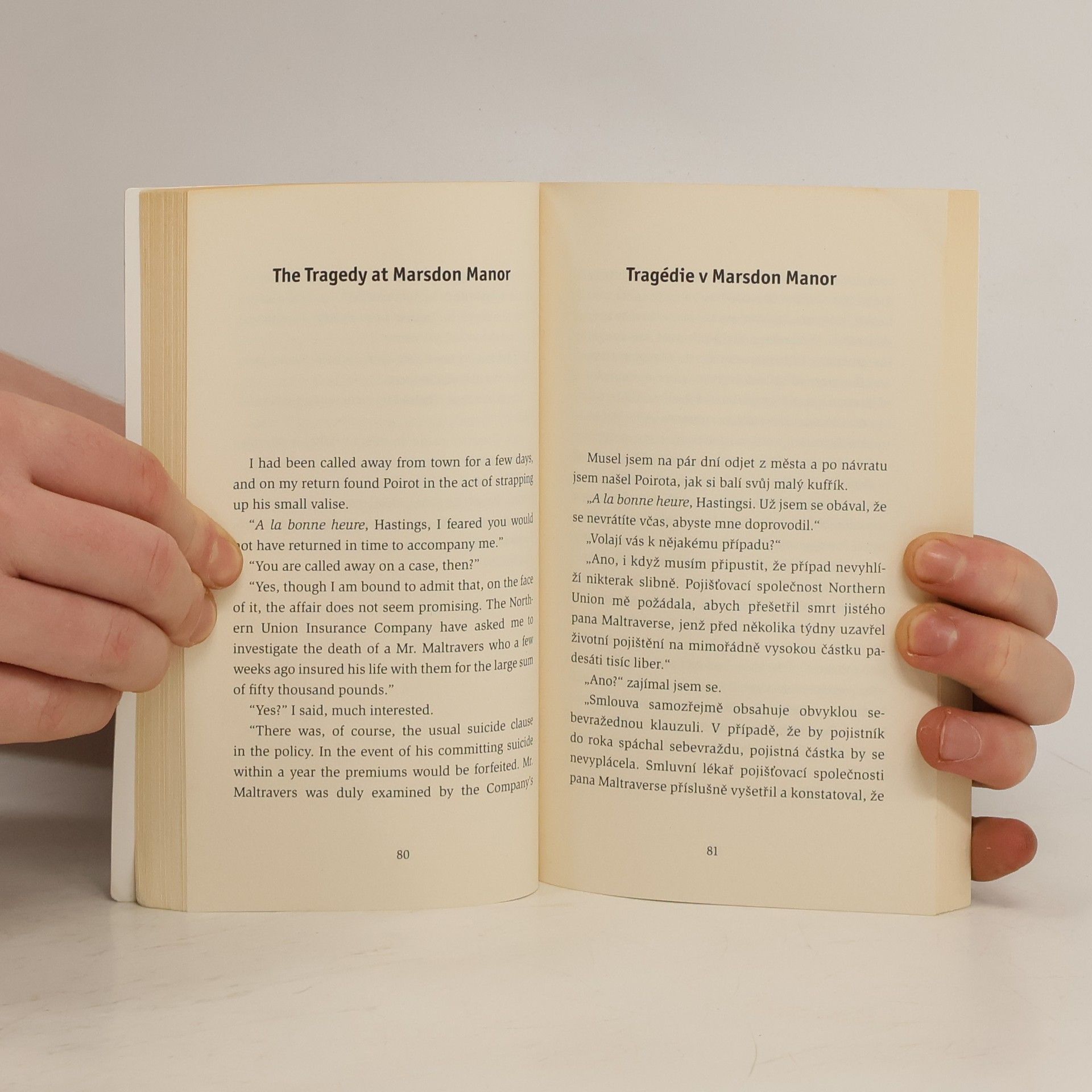 Zrcadlový anglicko-český text. Vydírání dopisy, nádherné diamanty a nepolapitelný Číňan – to vše v povídce Případ Západní hvězdy tvoří velmi zajímavou, nicméně ne neřešitelnou kombinaci pro Poirotovy šedé buňky mozkové. V povídce Tragédie v Marsdon Manor požádá ředitel pojišťovací společnosti svého přítele Hercula Poirota o vyšetření smrti muže, který krátce před smrtí uzavřel vysokou životní pojistku. V poslední povídce si spisovatel Anthony Eastwood láme hlavu nad zápletkou svého detektivního příběhu, až zazvoní telefon a svůdný ženský hlas ho prosí o pomoc. Jaké je však jeho překvapení, když je následně obviněn z vraždy!