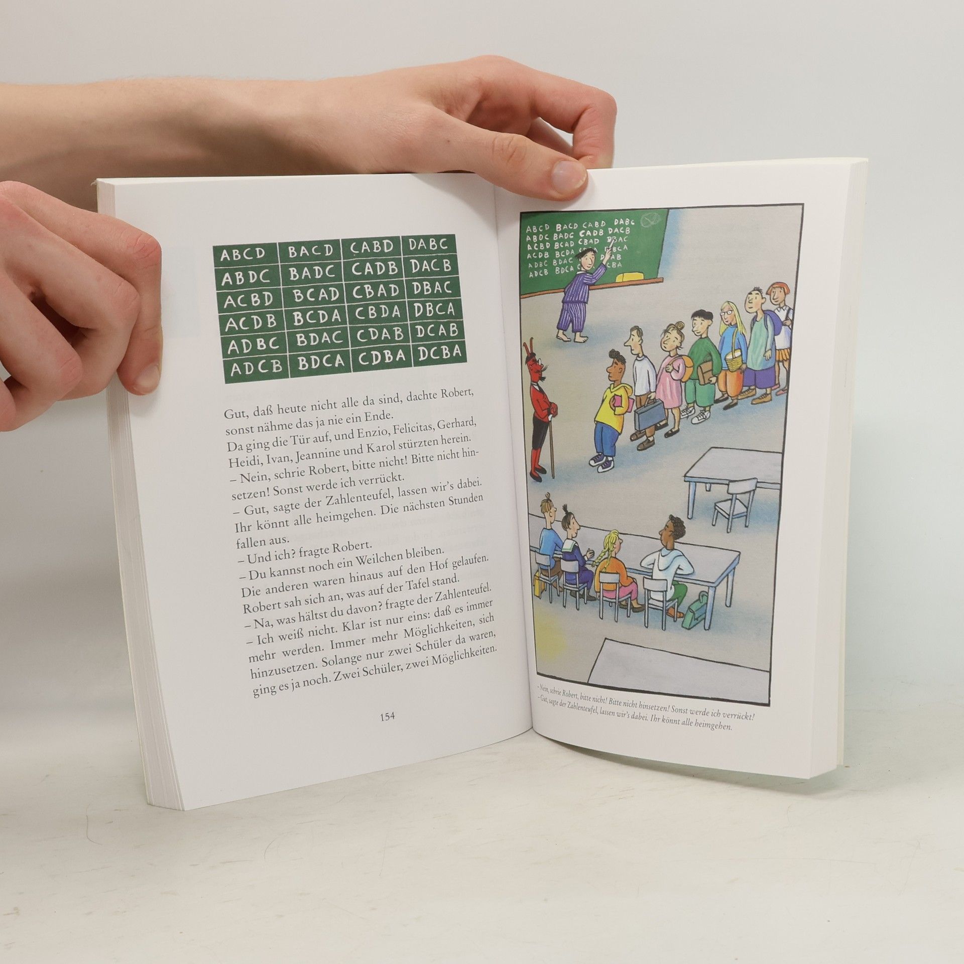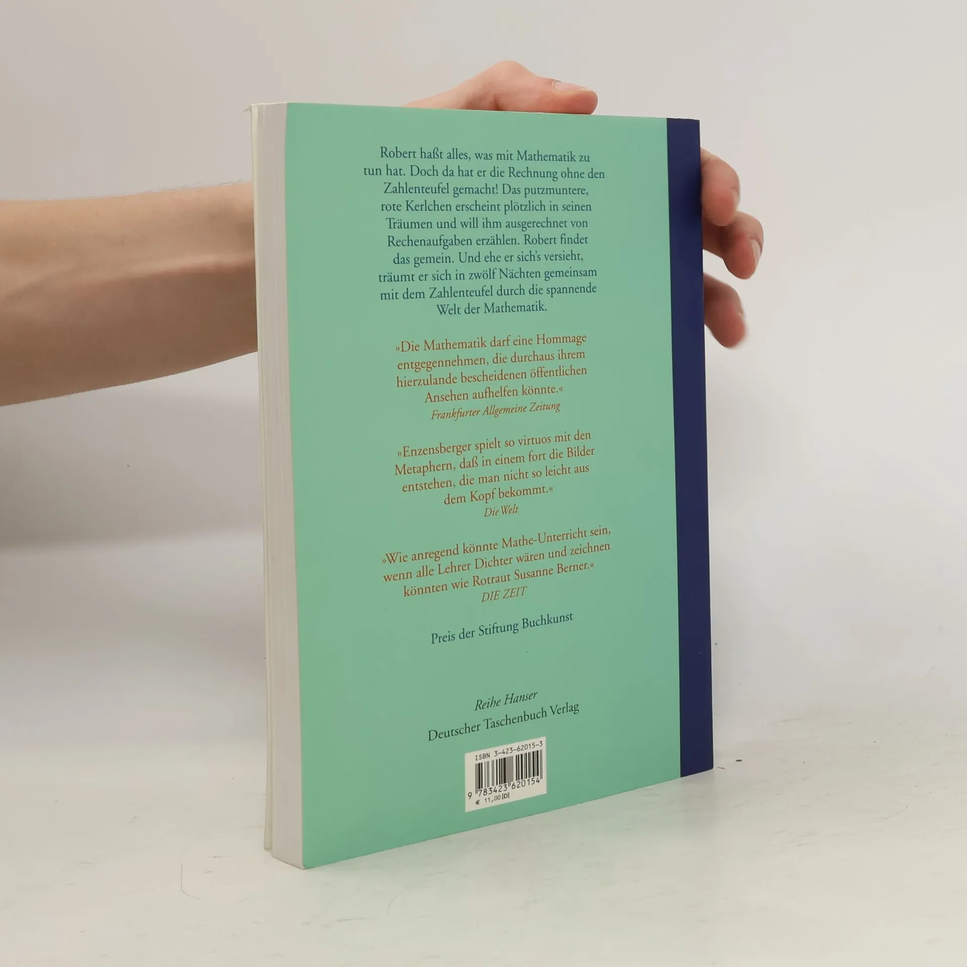 Robert hat das Träumen satt. Weil ihm die unheimlichsten Dinge im Traum passieren, beschließt er, es nicht mehr zu tun. Doch da hat er die Rechnung ohne den Zahlenteufel gemacht! Plötzlich ist er da, wirbelt mit seinem geheimnisvollen Stock herum und zaubert aus ihm ganze Zahlenfolgen. In zwölf Nächten erzählt er Robert von hopsenden Zahlen, wie man Rettiche zieht und daß es auch eingebildete Zahlen gibt. Wer bei so vielen Rechenaufgaben auf die Mathematik Lust bekommt, auf den wartet zum Ende jedes Kapitels eine kleine Denkaufgabe.›Der Zahlenteufel‹ wurde ausgezeichnet mit dem ›Luchs‹ und war eines der ›7 besten Bücher für junge Leser‹.