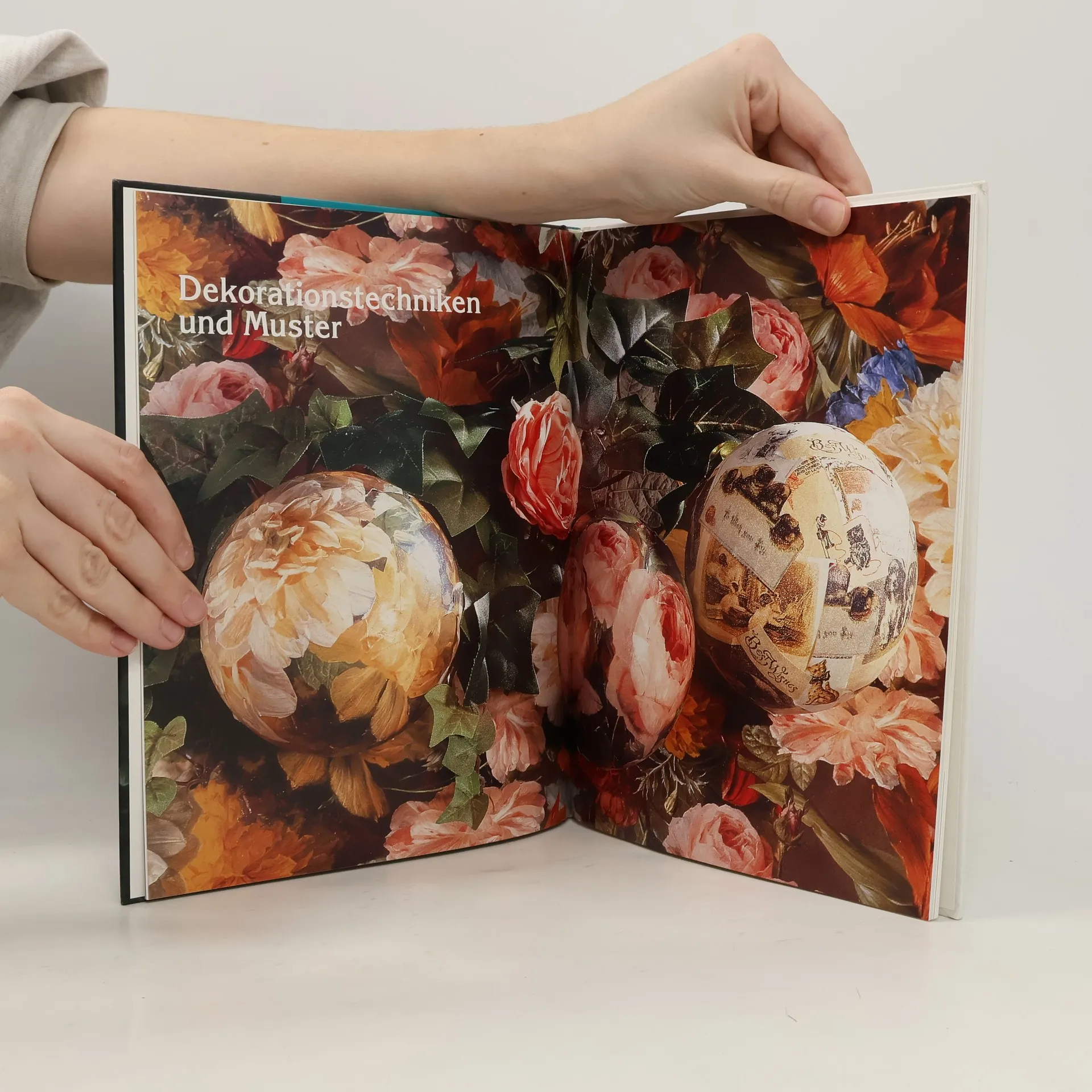 Viele Materialien und Techniken, mit Borten verzieren, Draht umwickeln, Blättern bekleben, Wachs formen, Pailletten dekorieren, Steinfarbe bemalen, Heißkleber bemustern und Seidenpapier überziehen