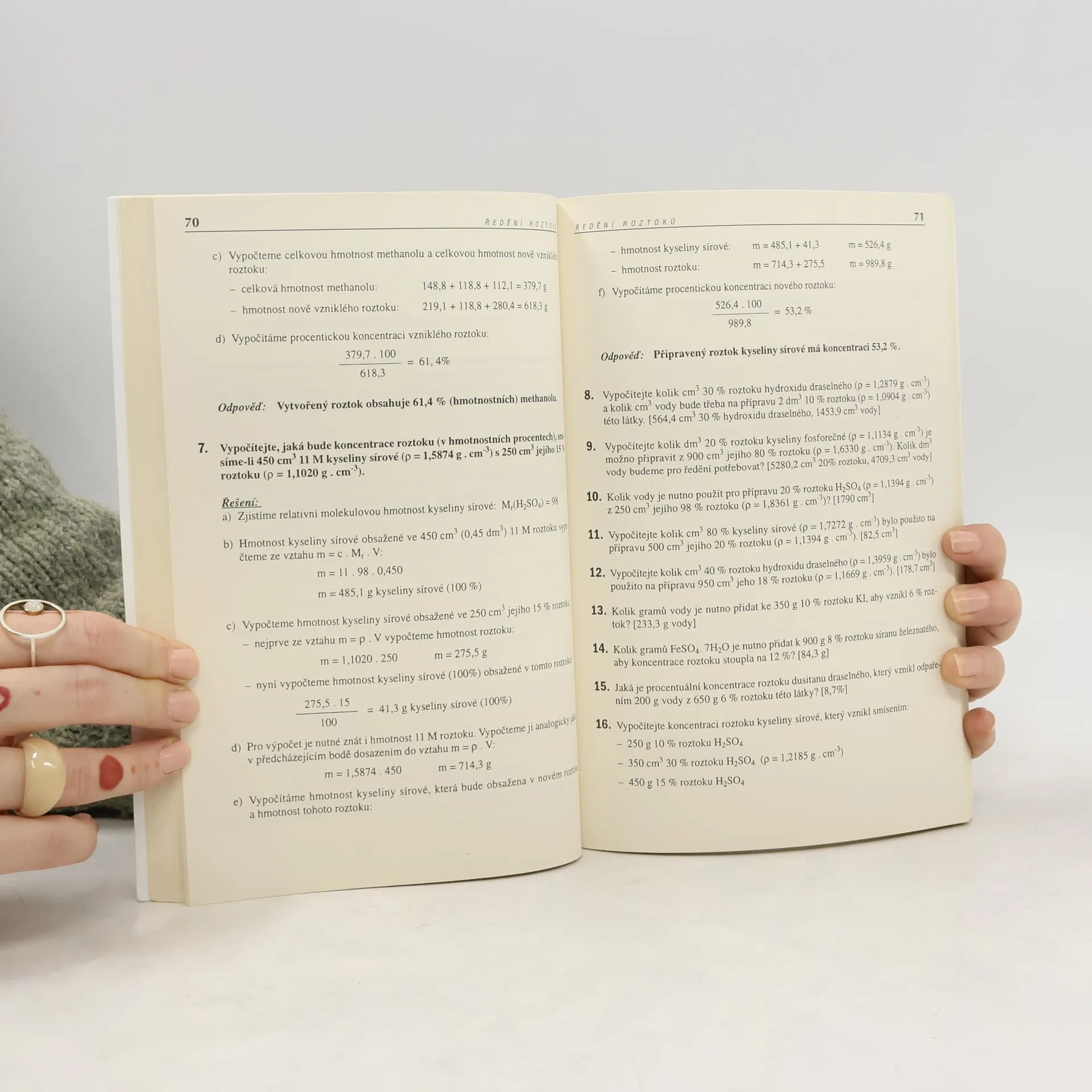 Sbírka řešených a neřešených příkladů z chemie - sbírku tvoří 17 kapitol nazvaných stavba atomu, chemická vazba, úpravy chemických rovnic, hmotnostní zlomek, objemové procento, látkové množství, molární koncentrace, výpočty z chemického vzorce, ředění roztoků, výpočty z chemických rovnic, výpočty pH, součin rozpustnosti, termochemie, elektrochemie…