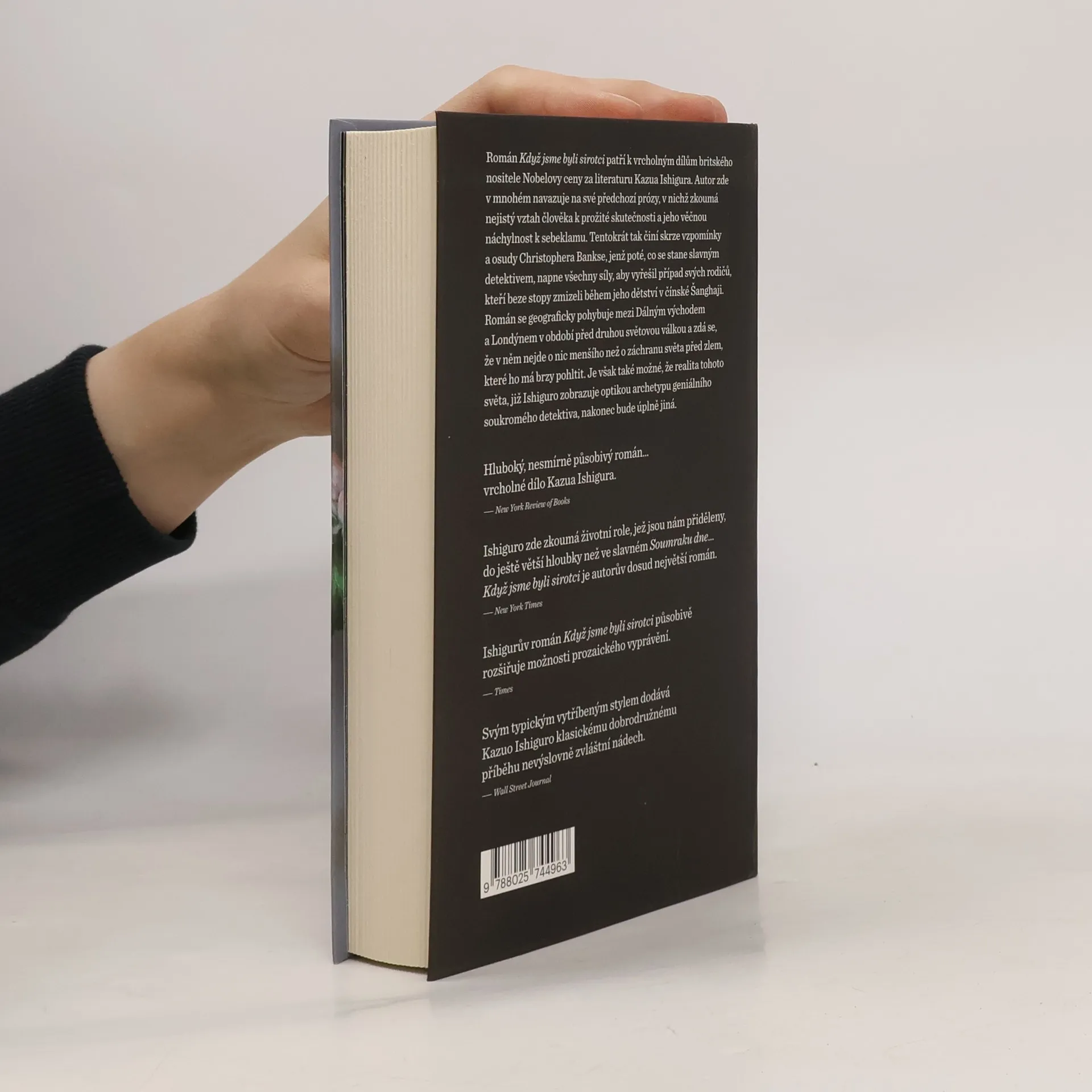 Příběh anglického detektiva, odhalujícího po téměř třiceti letech tajemství zmizení svých rodičů, žijících na počátku 20. století v Šanghaji. Román Když jsme byli sirotci patří k vrcholným dílům britského nositele Nobelovy ceny za literaturu Kazua Ishigura. Autor zde v mnohém navazuje na své předchozí čtyři prózy, v nichž zkoumá nejistý vztah člověka k prožité skutečnosti a jeho věčnou náchylnost k sebeklamu. Tentokrát tak činí skrze vzpomínky a osudy Christophera Bankse, jenž poté, co se stane slavným detektivem, napne všechny své síly, aby vyřešil případ svých rodičů, kteří beze stopy zmizeli v době jeho dětství prožitém v čínské Šanghaji. Román se geograficky pohybuje mezi Dálným východem a Londýnem v době před druhou světovou válkou a zdá se, že v něm nejde o nic menšího než o záchranu světa před zlem, které ho má brzy pohltit. Je však také možné, že realita tohoto světa, již Ishiguro zobrazuje optikou archetypu geniálního soukromého detektiva, nakonec bude úplně jiná. Nakladatelská anotace. Kráceno.