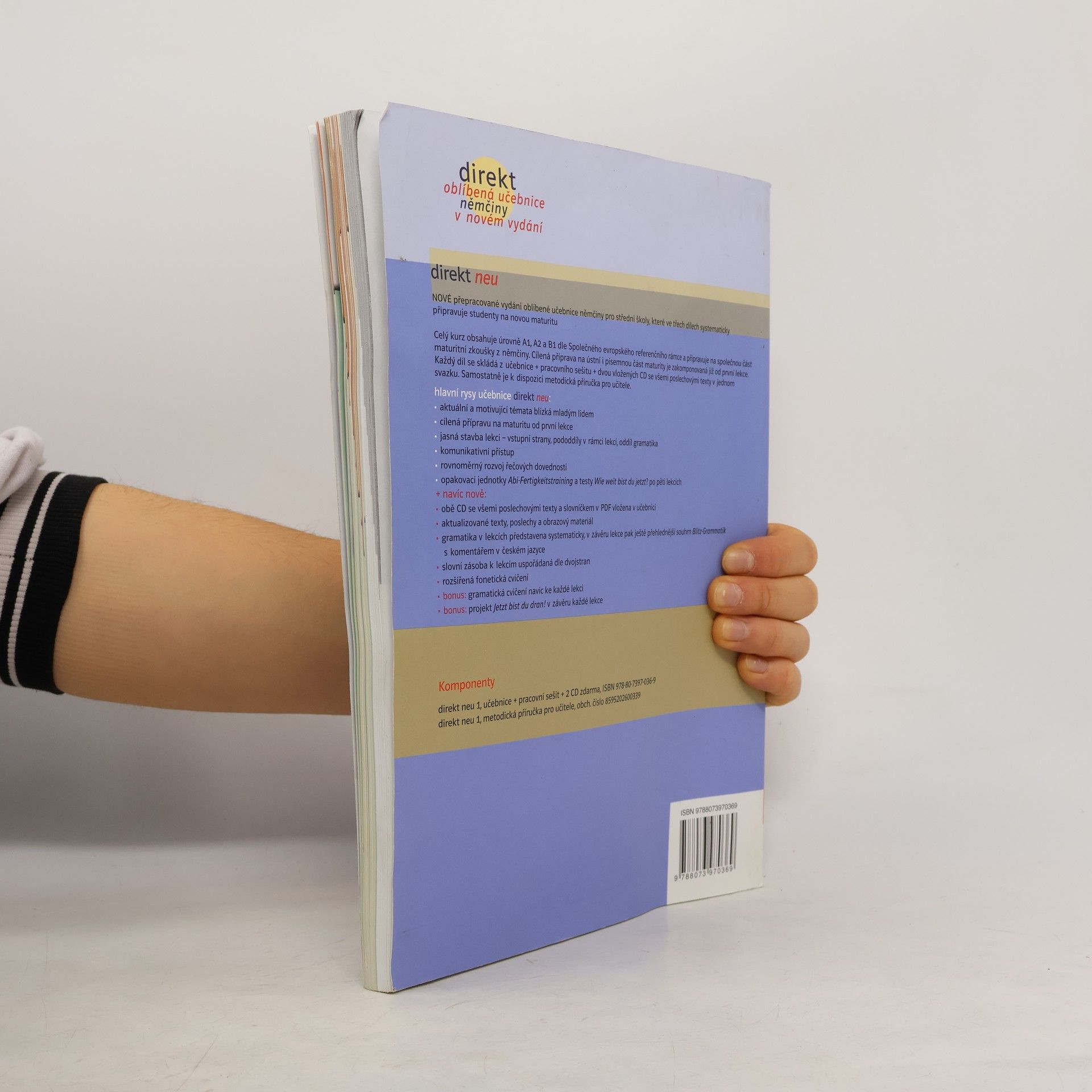 Direkt 1 Neu je osvědčená učebnice němčiny pro střední školy v novém aktualizovaném vydání, které zohledňuje připomínky a požadavky vyučujících i studentů německého jazyka a systematicky připravuje k nové maturitě. Celé nové třídílné vydání zahrnuje úrovně A1-B1 dle SERR. Direkt 1 NEU vychází z původního vydání, studenti naleznou od prvního dílu cílenou přípravu na novou maturitu a budou rovnoměrně rozvíjet v rozmanitých cvičeních všechny jazykové dovednosti. Zároveň však přepracované vydání vychází z požadavků vyučujících němčiny a jejich studentů.