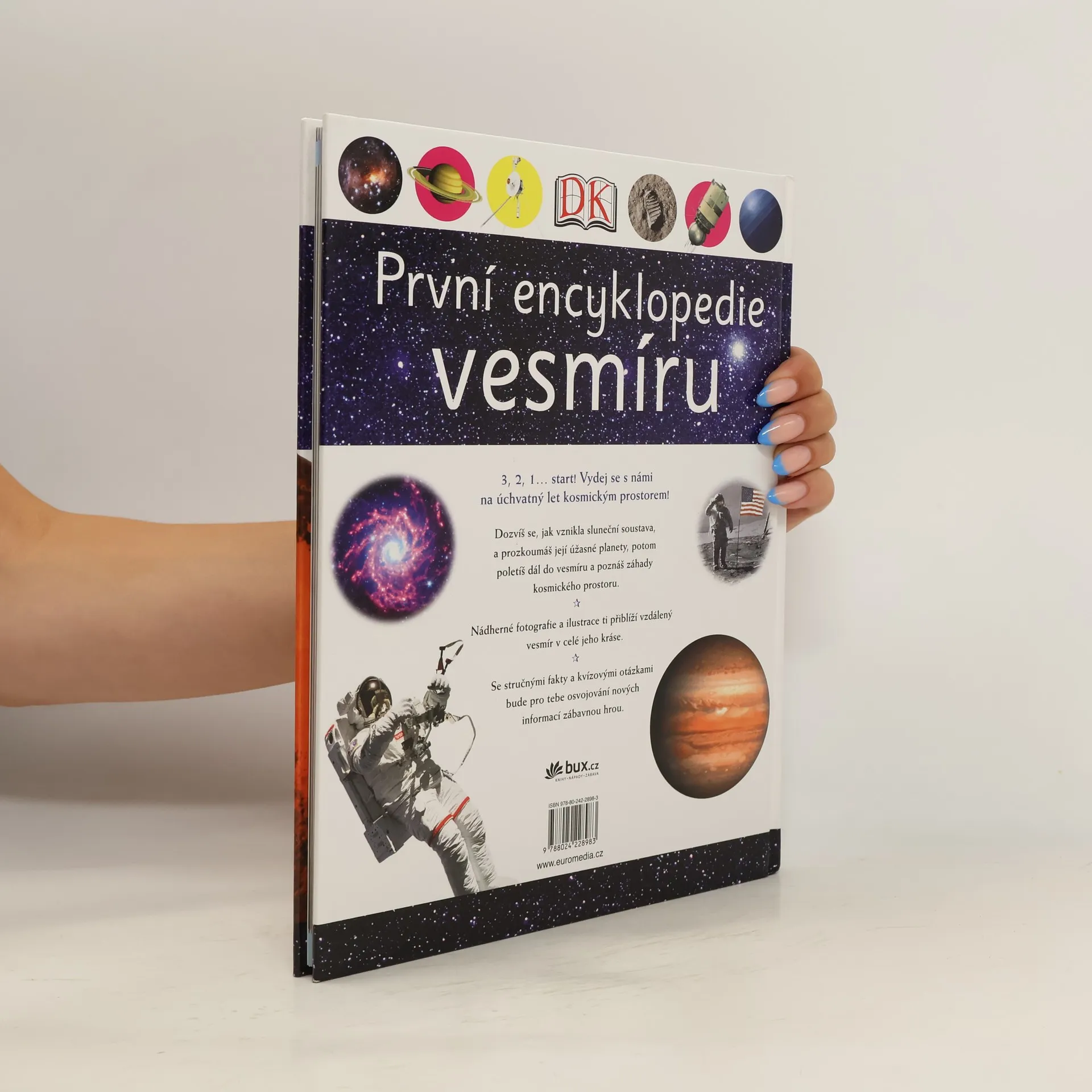 Právě vychází první svazek nové série pro malé čtenáře a začínající spisovatele, věnovaný vesmíru. V encyklopedii děti najdou informace o tom, jak vznikla sluneční soustava, poznají její planety a vydají se na cestu do hlubin tajemného vesmíru. Poutavé texty provázejí názorné ilustrace a úchvatné fotografie ukazující vesmír v celé jeho kráse. Se stručnými fakty a zábavnými kvízy se získávání nových informací stane zábavou.
