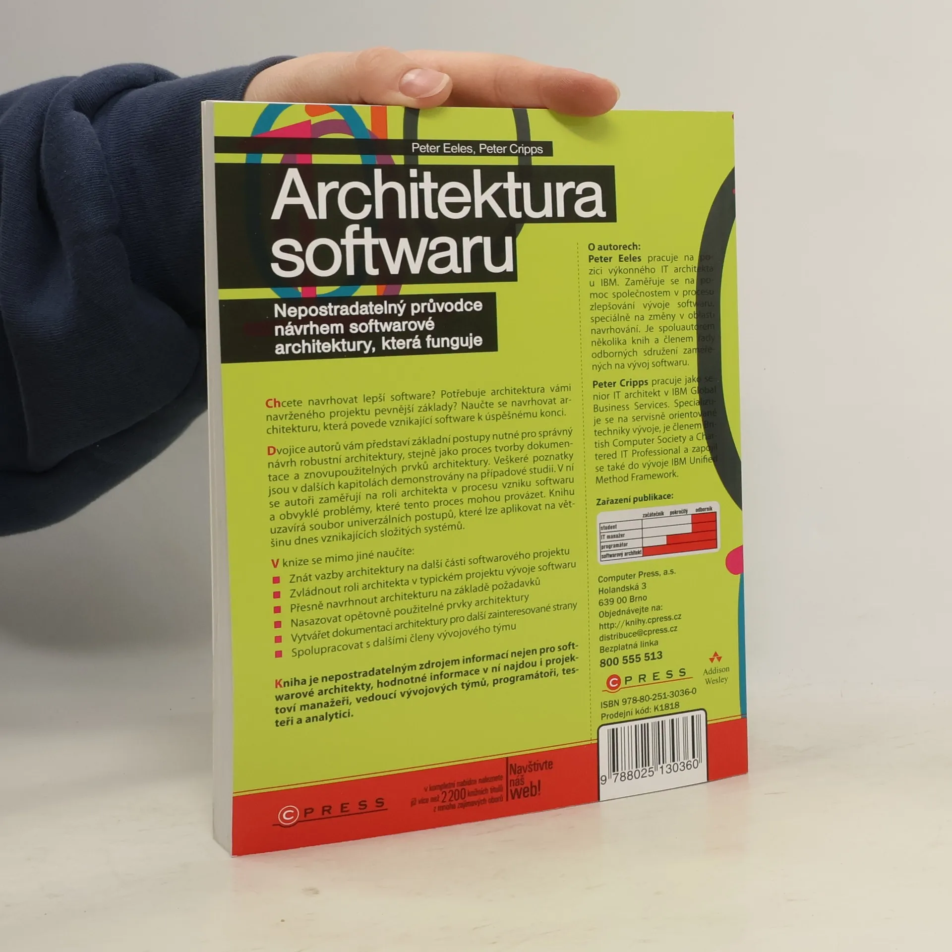 Chcete navrhovat lepší software? Potřebuje architektura vámi navrženého projektu pevnější základy? Naučte se navrhovat architekturu, která povede vznikající software k úspěšnému konci. Dvojice autorů vám představí základní postupy nutné pro správný návrh robustní architektury, stejně jako proces tvorby dokumentace a znovupoužitelných prvků architektury. Veškeré poznatky jsou v dalších kapitolách demonstrovány na případové studii. V ní se autoři zaměřují na roli architekta v procesu vzniku softwaru a obvyklé problémy, které tento proces mohou provázet. Knihu uzavírá soubor univerzálních postupů, které lze aplikovat na většinu dnes vznikajících složitých systémů. V knize se mimo jiné naučíte: - Znát vazby architektury na další části softwarového projektu - Zvládnout roli architekta v typickém projektu vývoje softwaru - Přesně navrhnout architekturu na základě požadavků - Nasazovat opětovně použitelné prvky architektury - Vytvářet dokumentaci architektury pro další zainteresované strany - Spolupracovat s dalšími členy vývojového týmu Kniha je nepostradatelným zdrojem informací nejen pro softwarové architekty, hodnotné informace v ní najdou i projektoví manažeři, vedoucí vývojových týmů, programátoři, testeři a analytici.