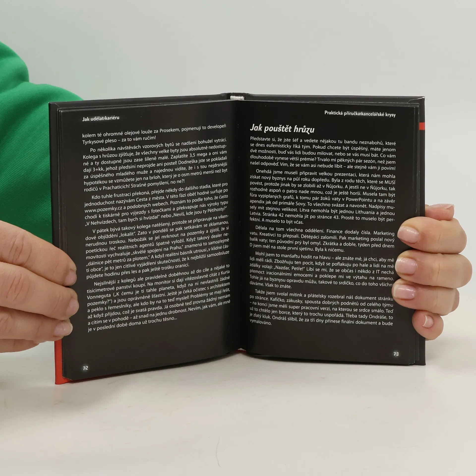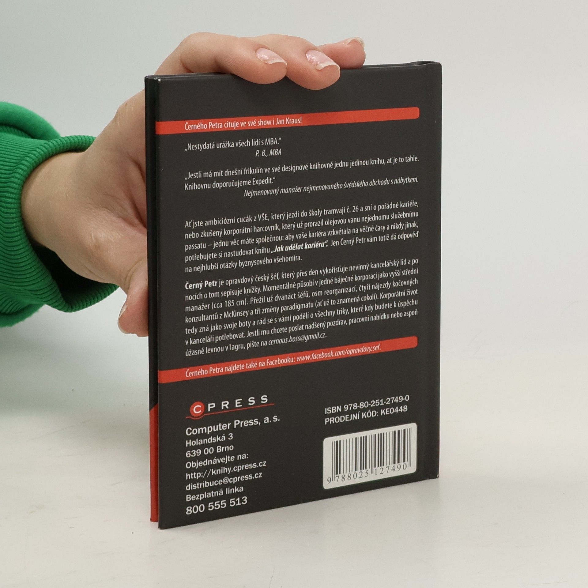 „Nestydatá urážka všech lidí s MBA.“ P. B., MBA „Jestli má mít dnešní frikulín ve své designové knihovně jednu jedinou knihu, ať je to tahle. Knihovnu doporučujeme Expedit.“ Nejmenovaný manažer nejmenovaného švédského obchodu s nábytkem. Ať jste ambiciózní cucák z VŠE, který jezdí do školy tramvají č. 26 a sní o pořádné kariéře, nebo zkušený korporátní harcovník, který už prorazil olejovou vanu nejednomu služebnímu passatu – jednu věc máte společnou: aby vaše kariéra vzkvétala na věčné časy a nikdy jinak, potřebujete si nastudovat knihu „Jak udělat kariéru“. Jen Černý Petr vám totiž dá odpověď na nejhlubší otázky byznysového všehomíra. Černý Petr je opravdový český šéf, který přes den vykořisťuje nevinný kancelářský lid a po nocích o tom sepisuje knížky. Momentálně působí v jedné báječné korporaci jako vyšší střední manažer (cca 185 cm). Přežil už dvanáct šéfů, osm reorganizací, čtyři nájezdy kočovných konzultantů z McKinsey a tři změny paradigmatu (ať už to znamená cokoli). Korporátní život tedy zná jako svoje boty a rád se s vámi podělí o všechny triky, které kdy budete k úspěchu v kanceláři potřebovat. Jestli mu chcete poslat nadšený pozdrav, pracovní nabídku nebo aspoň úžasně levnou V1agru, pište na email.cerneho.petra@email.cz