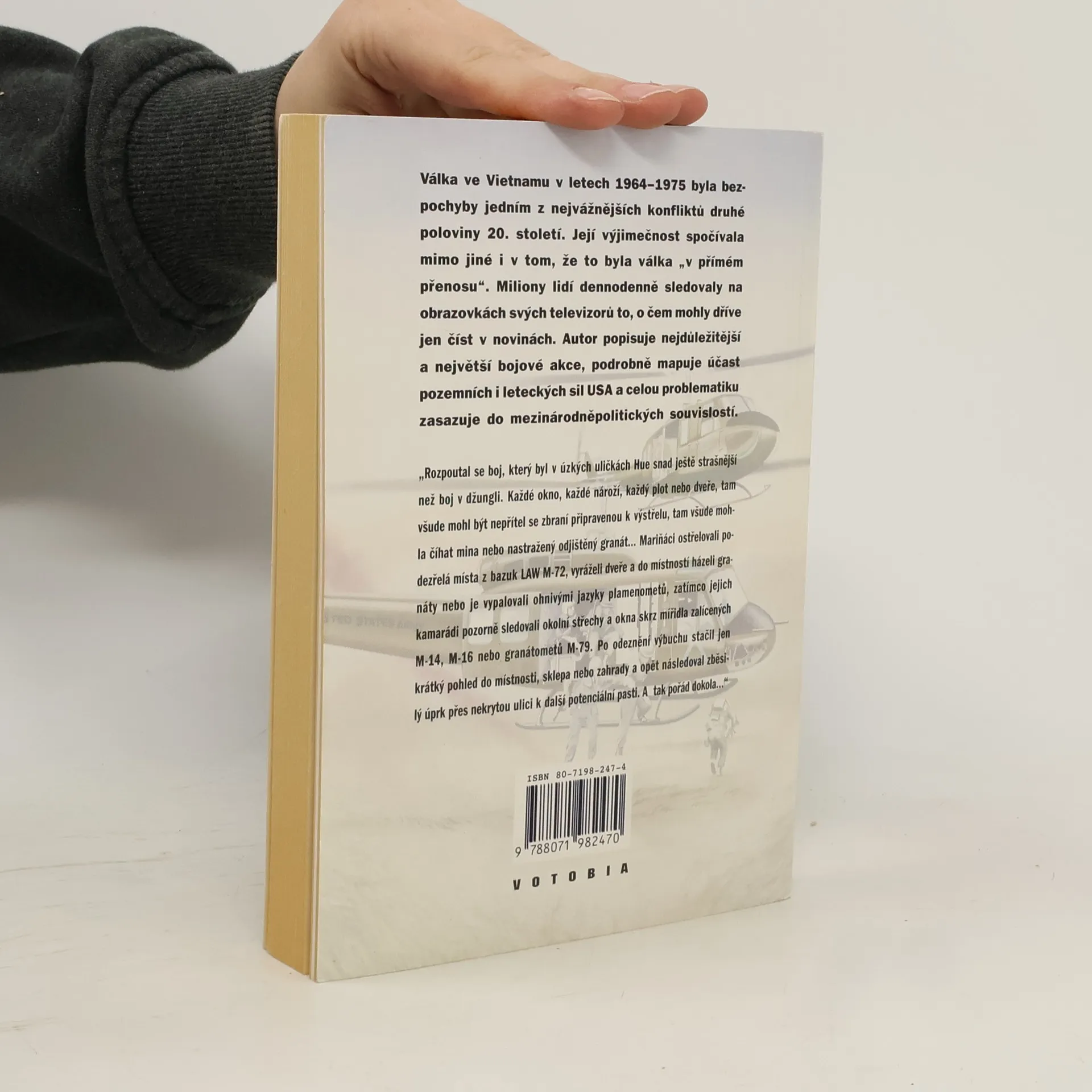 Válka ve Vietnamu byla bezpochyby jedním z nejvážnějších válečných konfliktů druhé poloviny 20. století. Kniha popisuje nejdůležitější a největší bojové akce, podrobně mapuje účast pozemních i leteckých sil USA a celou problematiku zasazuje do mezinárodněpolitických souvislostí.