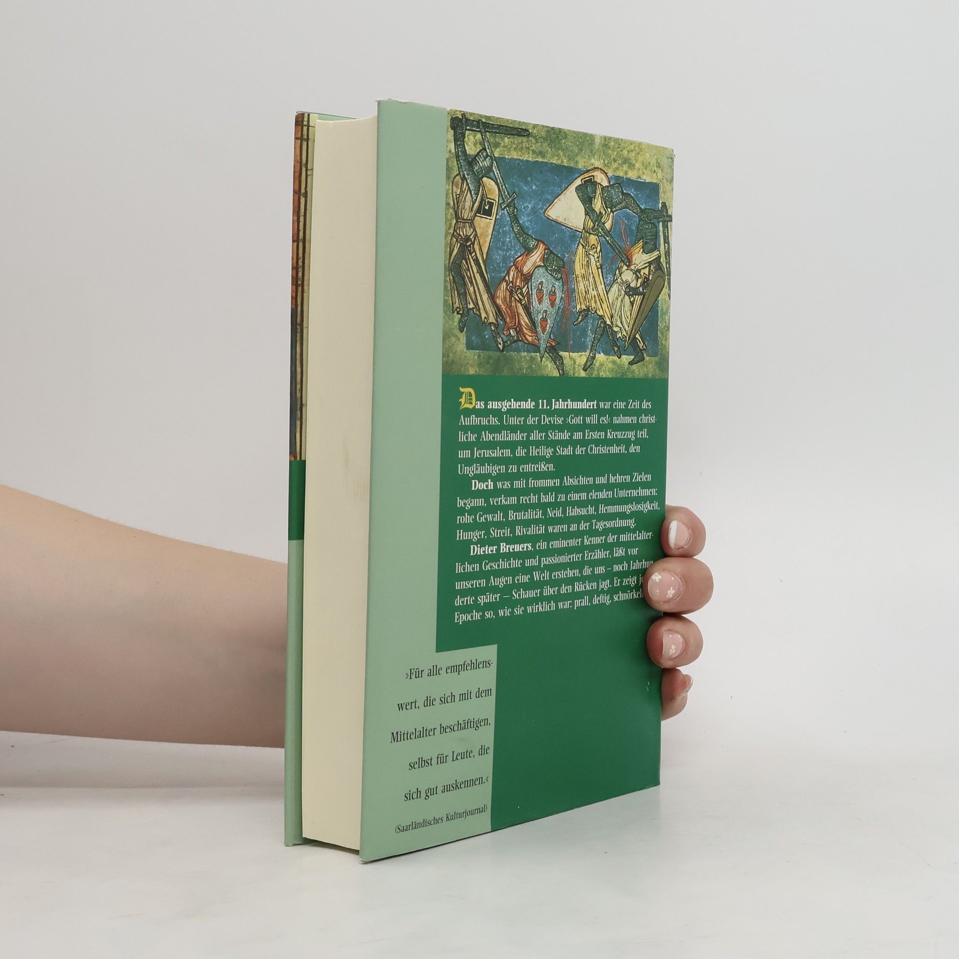 Das ausgehende 11. Jahrhundert war eine Zeit des Aufbruchs. Unter der Devise „Gott will es!“ nahmen christliche Abendländer aller Stände am Ersten Kreuzzug teil, um Jerusalem, die Heilige Stadt der Christenheit, den Ungläubigen zu entreißen. Doch was mit frommen Absichten und hehren Zielen begann, verkam recht bald zu einem elenden Unternehmen: rohe Gewalt, Brutalität, Neid, Habsucht, Hemmungslosigkeit, Hunger, Streit, Rivalität waren an der Tagesordnung. Dieter Breuers, ein eminenter Kenner der mittelalterlichen Geschichte und passionierter Erzähler, läßt vor unseren Augen eine Welt erstehen, die uns - noch Jahrhunderte später - Schauer über den Rücken jagt. Er zeigt jene Epoche so, wie sie wirklich war: prall, deftig, schnörkellos. „Für alle empfehlenswert, die sich mit dem Mittelalter beschäftigen, selbst für Leute, die sich gut auskennen.“ (Saarländisches Kulturjournal)