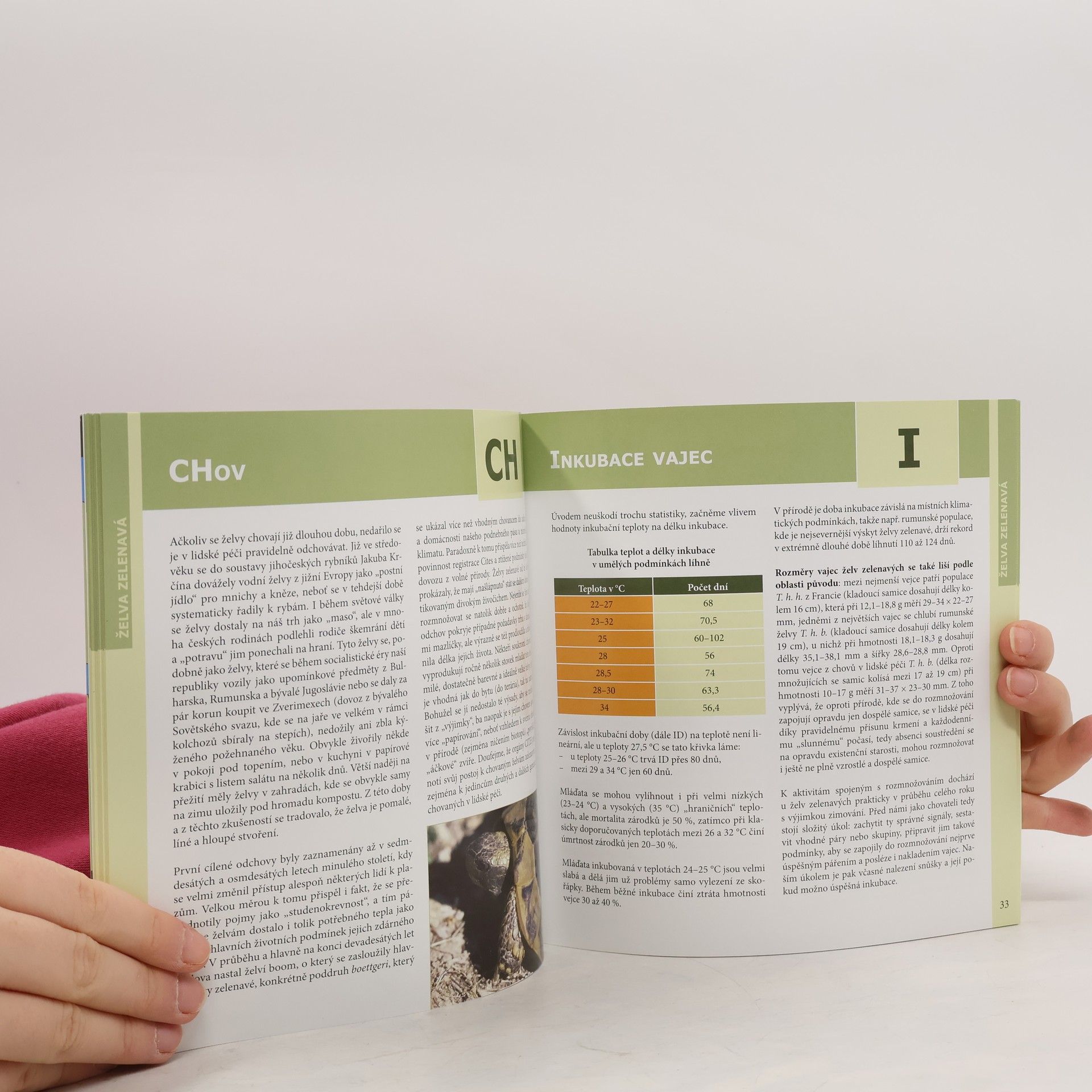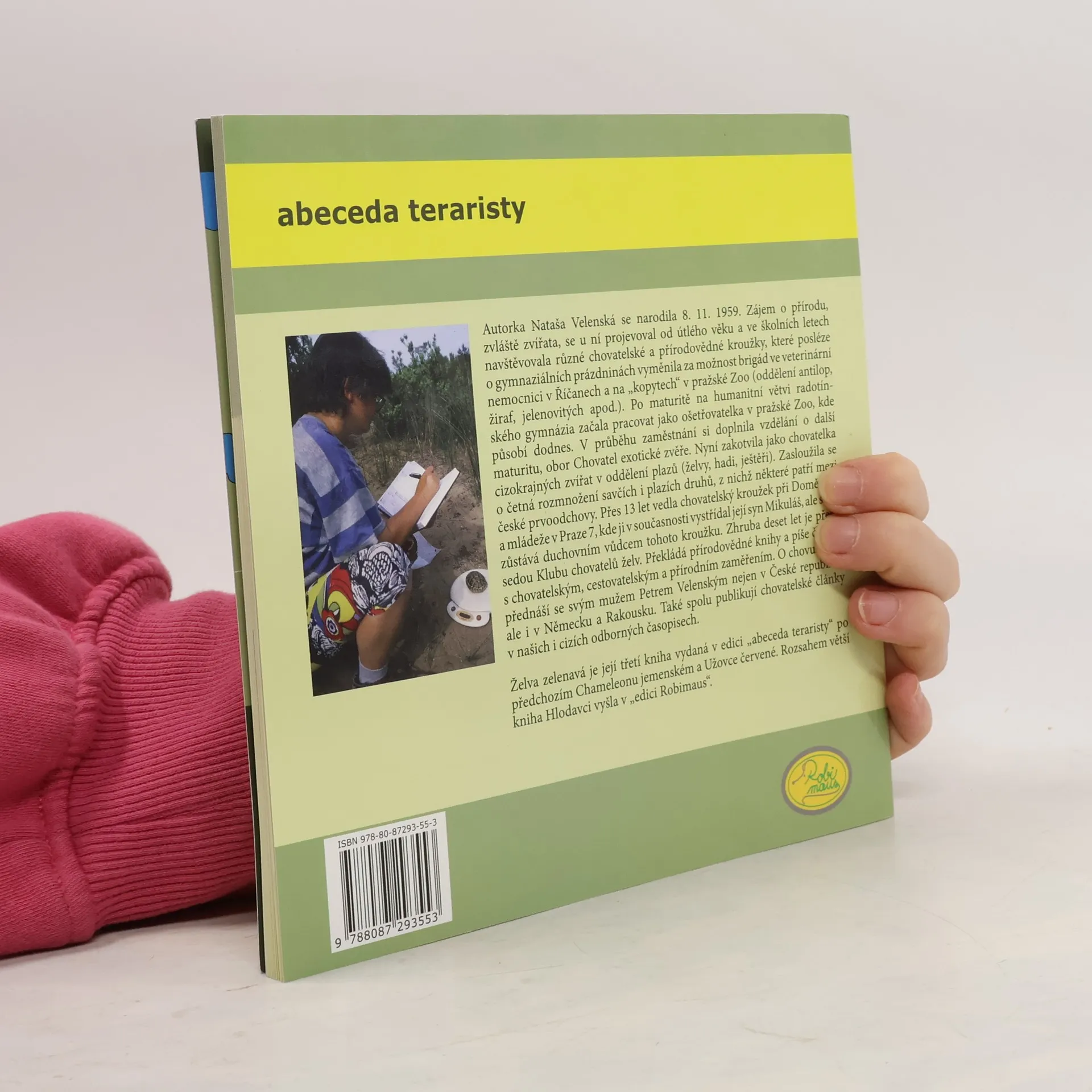 Autorka, paní Nataša Velenská, naše přední odbornice na chov želv, již řadu let působí v pražské ZOO. V knize obsáhle popisuje vše, co se týká chovu a odchovu Testudo hermanni - želvy zelenavé. Pro začínající teraristy je kniha absolutním základem, ale mnoho zajímavých a poučných poznatků zde naleznou i zkušení chovatelé. Nová kniha edice Abeceda teraristy přibližuje nejčastěji chovanou suchozemskou Želvu zelenavou (Testudo hermanni). Autorka Nataša Velenská v knize popisuje základní a potřebné informace pro chov těchto želv, od krmení, bydlení, růstu, až po rozmnožování či veterinární problémy. Kapitoly jsou řazeny podle abecedních hesel, doplněné množstvím fotografií a popisů. V každém výtisku je vložen arch, podle kterého můžete svou želvu jednoduše a přesně měřit a tím sledovat její růst. Údaje si můžete zaznamenat do příslušných kolonek na druhé straně archu.