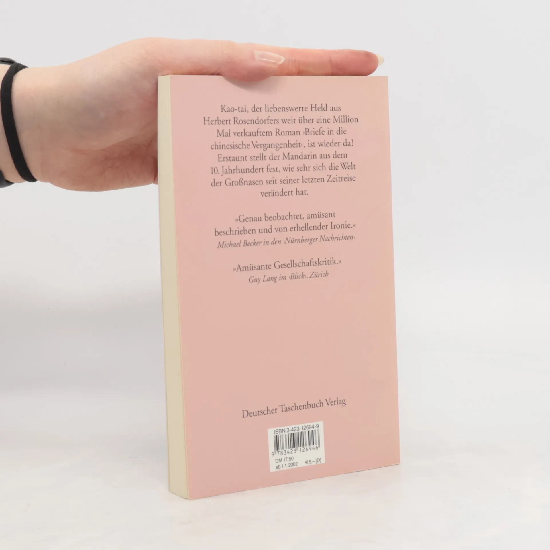 Eine ironische Gesellschaftskritik Vor fünfzehn Jahren hat Kao-tai mit Hilfe einer Zeitmaschine schon einmal die Welt der Großnasen erforscht. Nun kehrt der Mandarin aus dem 10. Jahrhundert auf der Flucht vor Feinden in das wiedervereinigte Deutschland zurück. Er landet in einer Stadt namens Kö-leng – und das mitten im Karneval. Auf der Suche nach seinen alten Freunden erfährt er von der »großen Umwendung«. Es verschlägt ihn in die neuen »Schüssel-Provinzen«, ja er gelangt sogar bis nach New York und in den Vatikan. Seine dramatischen Erlebnisse und verwirrenden Eindrücke hält er auch diesmal für seinen Freund im Reich der Mitte fest.