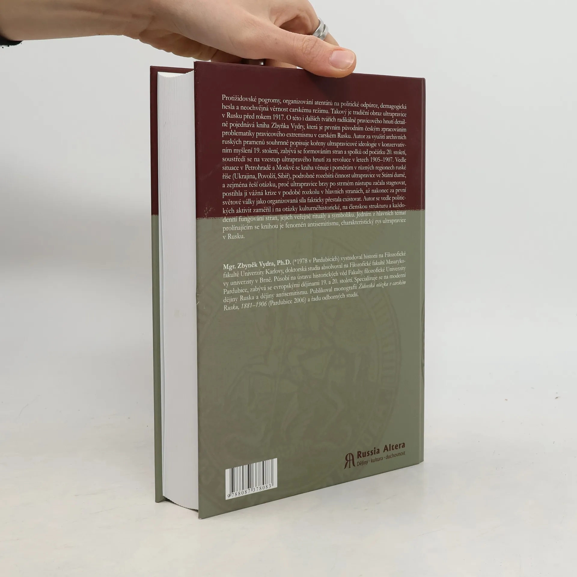 Protižidovské pogromy, organizování atentátů na politické odpůrce, demagogická hesla a neochvějná věrnost carskému režimu. Takový je tradiční obraz ultrapravice v Rusku před rokem 1917. O této i dalších tvářích radikálně pravicového hnutí detailně pojednává kniha Zbyňka Vydry, která je prvním původním českým zpracováním problematiky pravicového extremismu v carském Rusku. Autor za využití archivních ruských pramenů souhrnně popisuje kořeny ultrapravicové ideologie v konzervativním myšlení 19. stolení, zabývá se formováním stran a spolků od počátku 20. století, soustředí se na vzestup ultrapravého hnutí za revoluce v letech 1905-1907. Vedle situace v Petrohradě a Moskvě se kniha věnuje i poměrům v různých regionech ruské říše (Ukrajina, Povolží, Sibiř), podrobně rozebírá činnost ultrapravice ve Státní dumě, a zejména řeší otázku, proč ultrapravice brzy po strmém nástupu začala stagnovat, postihla ji vážná krize v podobě rozkolu v hlavních stranách, až nakonec za první světové války jako organizovaná síla fakticky přestala existovat. Autor se vedle politických aktivit zaměřil i na otázky kulturněhistorické, na členskou strukturu a každodenní fungování stran, jejich veřejné rituály a symboliku. Jedním z hlavních témat prolínajícím se knihou je fenomén antisemitismu, charakteristický rys ultrapravice v Rusku.