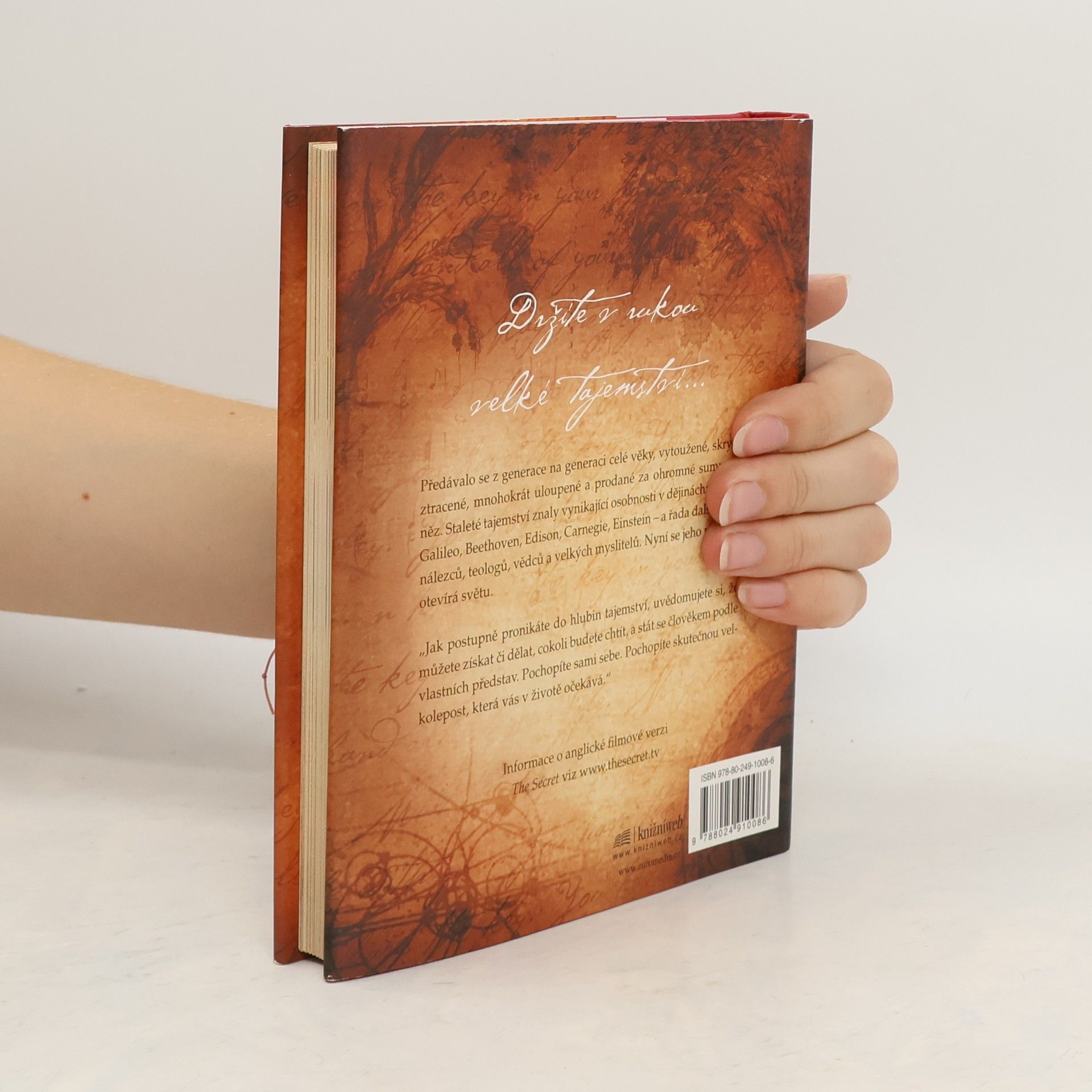 Stojíte na prahu poznání. Fragmenty velkého tajemství se objevují v legendách, mýtech a filozofiích po celá staletí, jen znát tu správnou šifru. Kniha, kterou právě držíte v rukou, shromáždila moudrost předchozích generací a naučí vás dosáhnout všeho, co si přejete - v oblasti peněz, zdraví, vztahů i osobního štěstí. Pochopíte skryté síly, které ve vás dřímají, a odhalíte jejich moc. Učení novodobých mistrů, kteří štěstí, zdraví a bohatství dosáhli, vám ukáže, jak lze tajemství spokojeného života aplikovat na každém kroku.