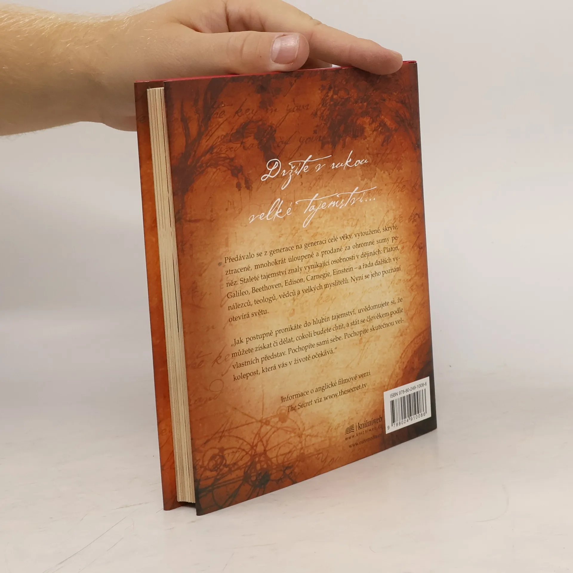 Stojíte na prahu poznání. Fragmenty velkého tajemství se objevují v legendách, mýtech a filozofiích po celá staletí, jen znát tu správnou šifru. Kniha, kterou právě držíte v rukou, shromáždila moudrost předchozích generací a naučí vás dosáhnout všeho, co si přejete - v oblasti peněz, zdraví, vztahů i osobního štěstí. Pochopíte skryté síly, které ve vás dřímají, a odhalíte jejich moc. Učení novodobých mistrů, kteří štěstí, zdraví a bohatství dosáhli, vám ukáže, jak lze tajemství spokojeného života aplikovat na každém kroku.