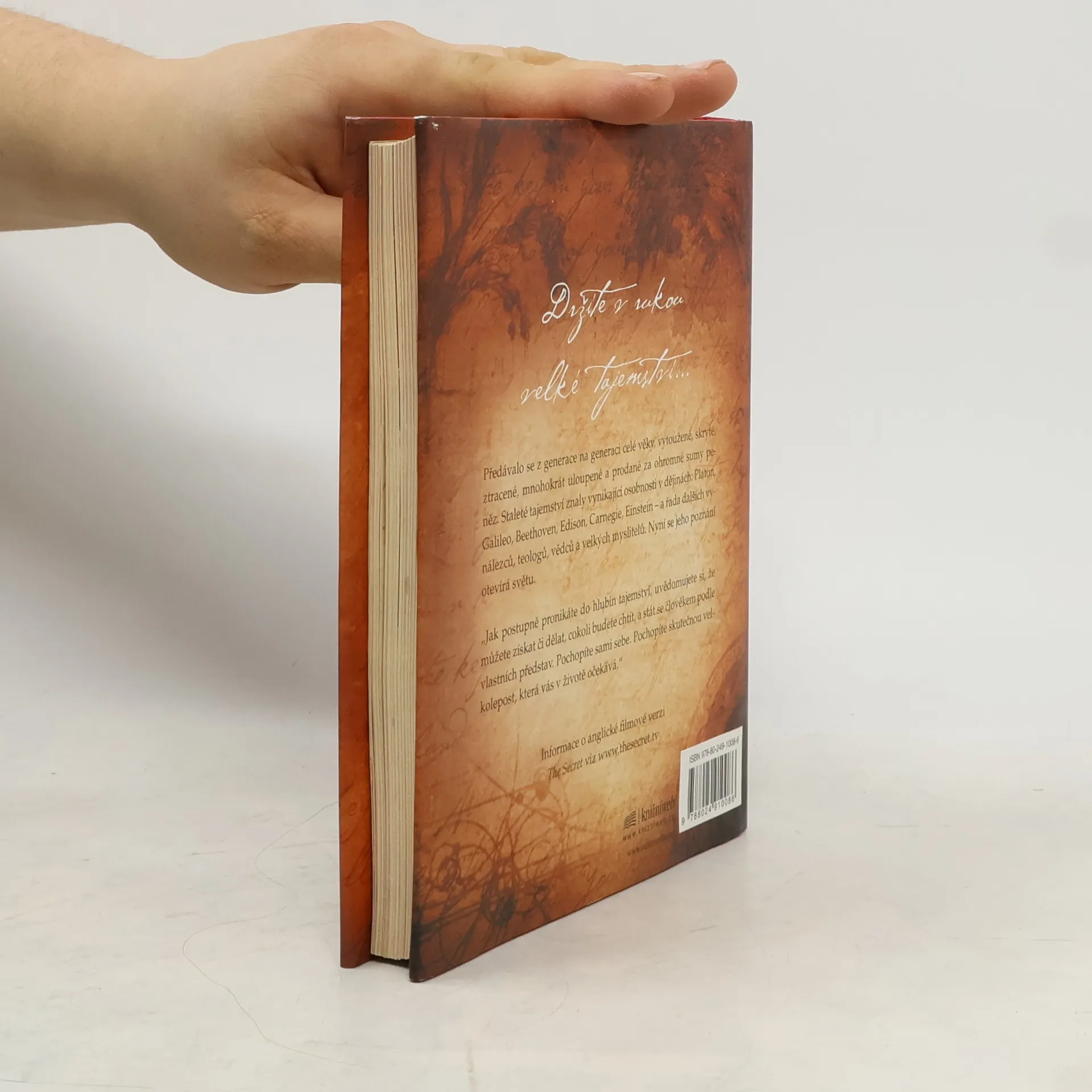 Stojíte na prahu poznání. Fragmenty velkého tajemství se objevují v legendách, mýtech a filozofiích po celá staletí, jen znát tu správnou šifru. Kniha, kterou právě držíte v rukou, shromáždila moudrost předchozích generací a naučí vás dosáhnout všeho, co si přejete - v oblasti peněz, zdraví, vztahů i osobního štěstí. Pochopíte skryté síly, které ve vás dřímají, a odhalíte jejich moc. Učení novodobých mistrů, kteří štěstí, zdraví a bohatství dosáhli, vám ukáže, jak lze tajemství spokojeného života aplikovat na každém kroku.