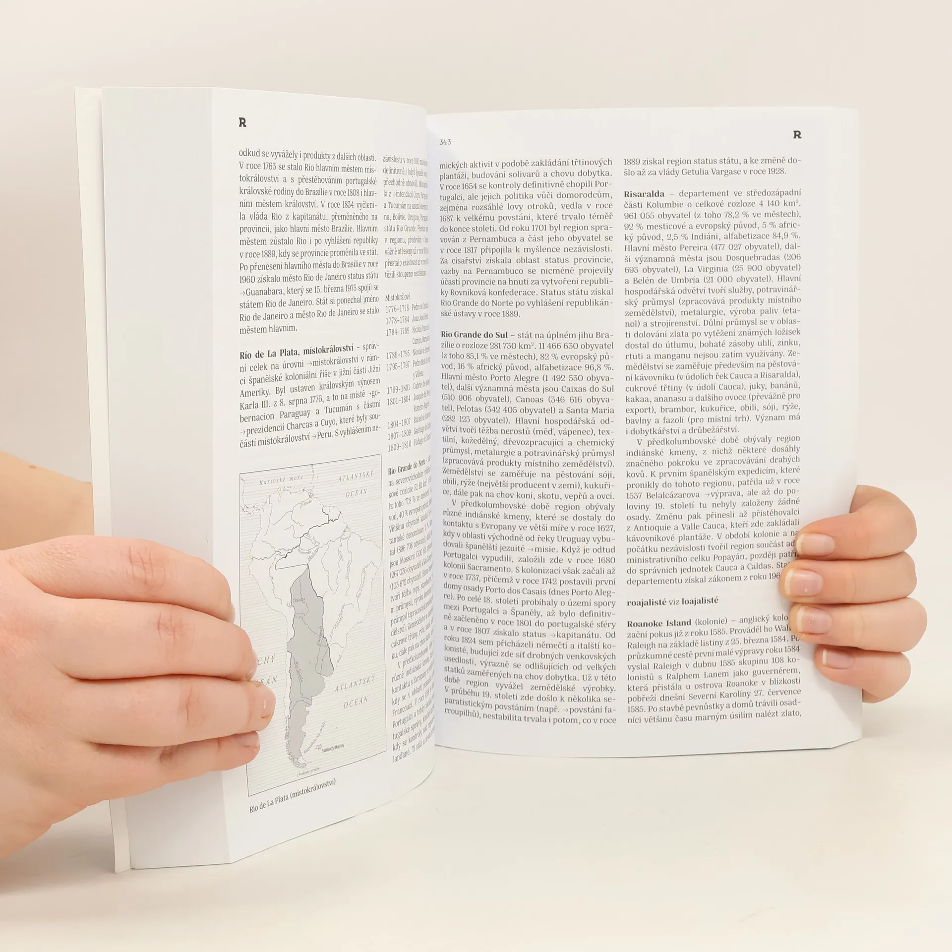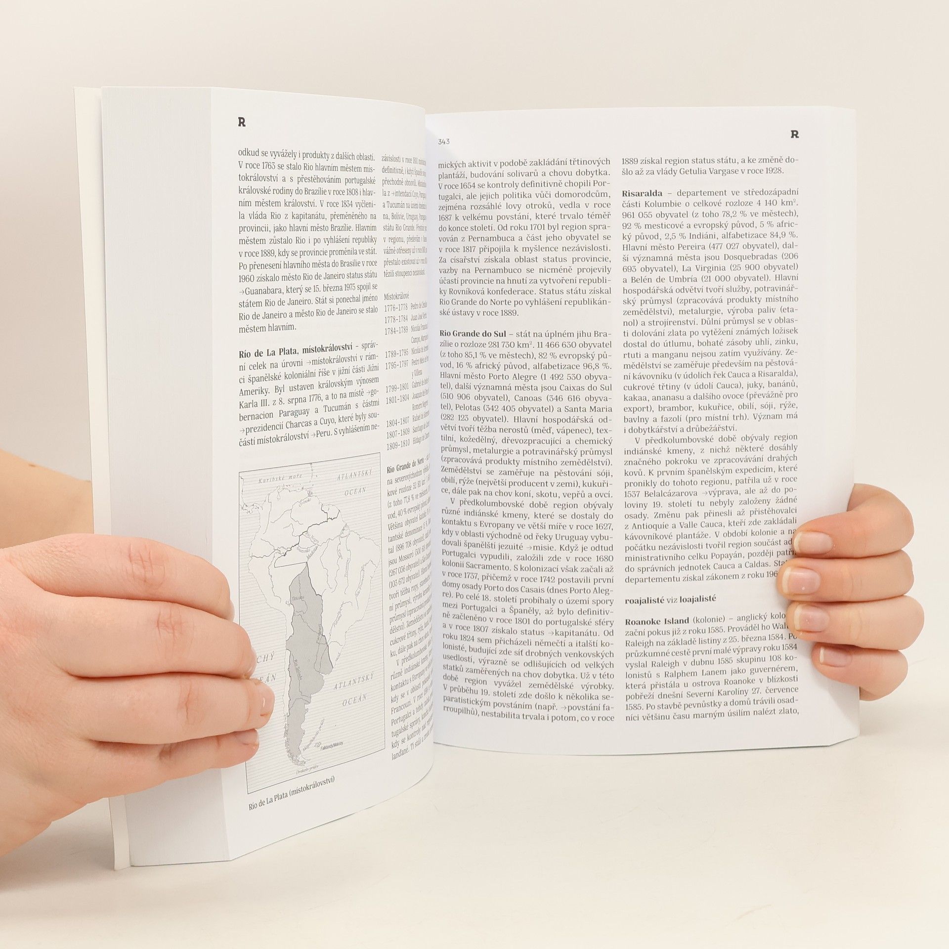 Encyklopedie věnovaná americkému kontinentu obsahuje hesla popisující všechny současné i minulé státní útvary v Severní i Jižní Americe a také události, které zásadně ovlivnily dějiny regionu, jako např. objevitelské expedice, války, bitvy, povstání a aféry. Přehledová hesla věnovaná současným státům podávají základní informace o obyvatelstvu, hospodářství, zemědělství, historii, teritoriálním vývoji i současné politické situaci. Nechybí ani seznamy prezidentů či jiných vládnoucích státních představitelů. Dále zde čtenář nalezne vysvětlení klíčových pojmů, informace o nejdůležitějších hnutích, smlouvách, organizacích a různých fenoménech typických pro tento region. Druhé vydání obsahuje kromě aktualizovaných a doplněných hesel také nové mapy, zachycující současný stav i historický vývoj.