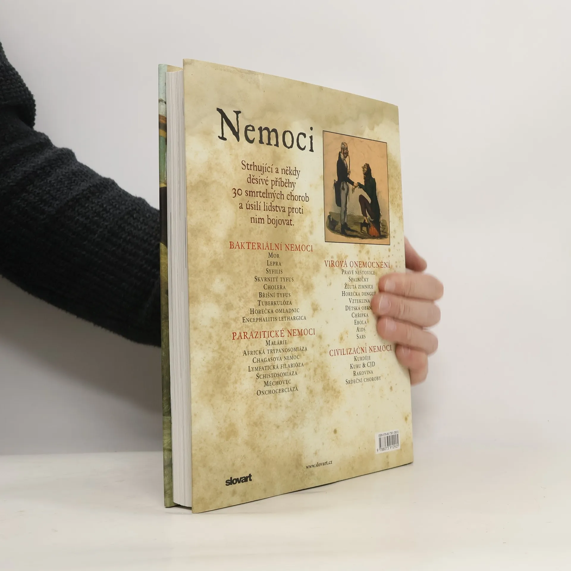 Strhující souhrn příběhů hrůz a fascinace spojených s morem, pravými neštovicemi, epidemiemi všeho druhu s dostupnými dějinami nemocí a boje člověka proti nim v průběhu tří tisíciletí. Aktuální a objevné populárně společenské dílo autorky, jejíž znalosti a nadšení pro téma vyzařují z každého slova.
