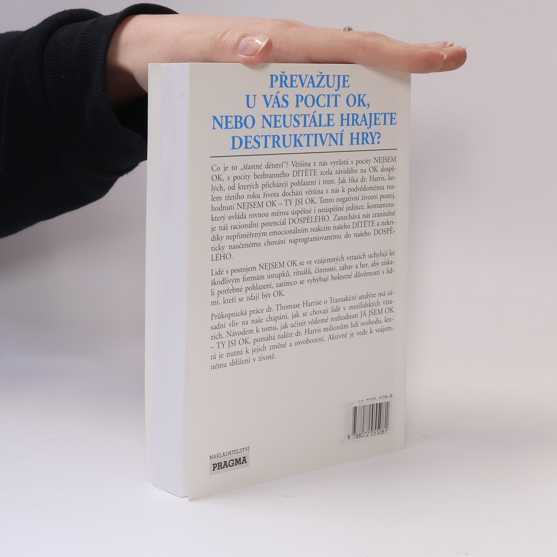 Já jsem OK, ty jsi OK. Transakční analýza mění vědomí a chování lidí, kteří nikdy nepoznali pocit, že jsou OK. Bestseller o transakční analýze nabízí cestu lidem, kteří si nesou z dětství negativní životní postoj, který posléze ovlivňuje racionální potenciál dospělého... Průkopnická práce dr. Thomase Harrise o Transakční anylýze má zásadní vliv na naše chápání, jak se chovají lidé v mezilidských vztazích. Návodem k tomu, jak učinit vědomé rozhodnutí Já sem OK - ty jsi OK, pomáhá nalézt dr. Harris miliónům lidí svobodu, která je nutná k jejich změně a osvobození. Aktivně je vede k vzájemnému sblížení v životě.