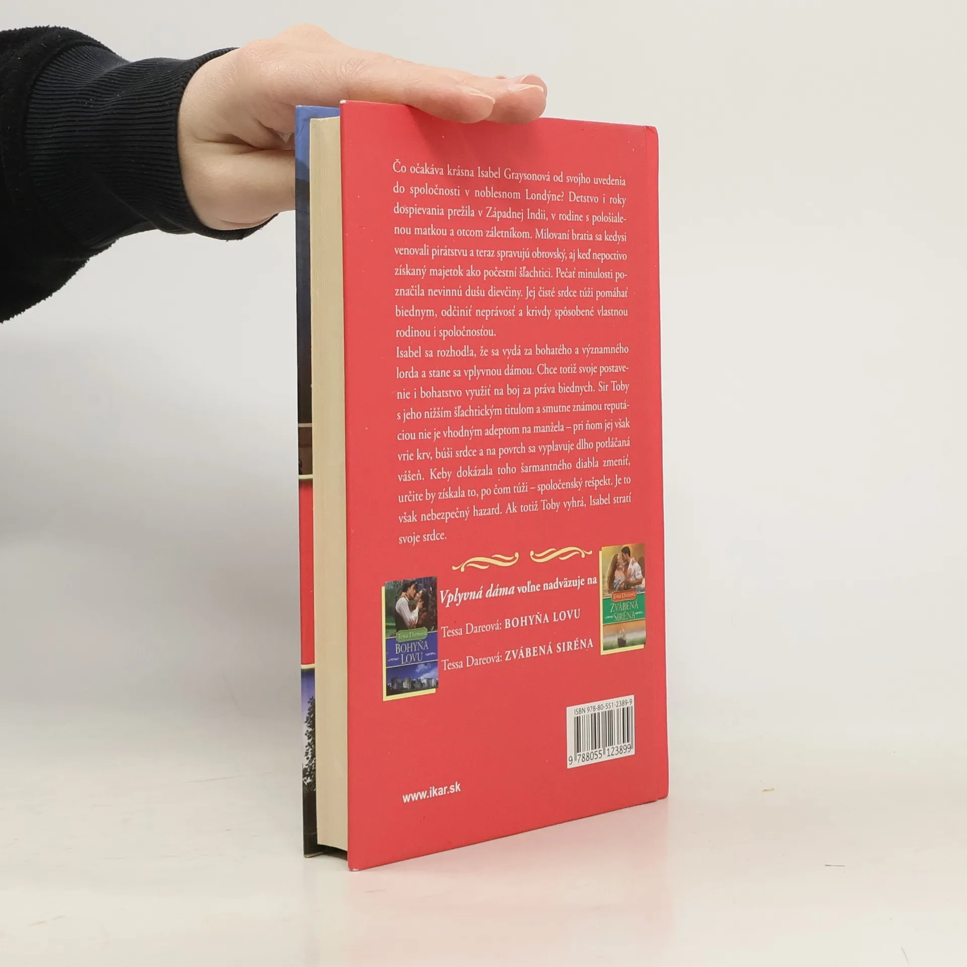 Čo očakáva krásna Isabel Graysonová od svojho uvedenia do spoločnosti v noblesnom Londýně? Detstvo i dospievamie prežila v Západnej Indii, v rodine s pološialenou matkou a otcom záletníkom.Bratia sa kedysi venovali pirátstvu, tak su teraz bohatý.Jej čisté srdce túži pomáhat´ biednym. Preto sa Isabel rozhodne vydat´za bohatého a významného lorda. Sir Toby je nižší šlachtic se špatnou reputáciou.Keby ho dokázala zmenit´, určitě by získala to, po čom túži - spoločenský rešpekt.Je to však nebezpečný hazard.Ak totiž Toby vyhrá, Isabel stratí svoje srdce.