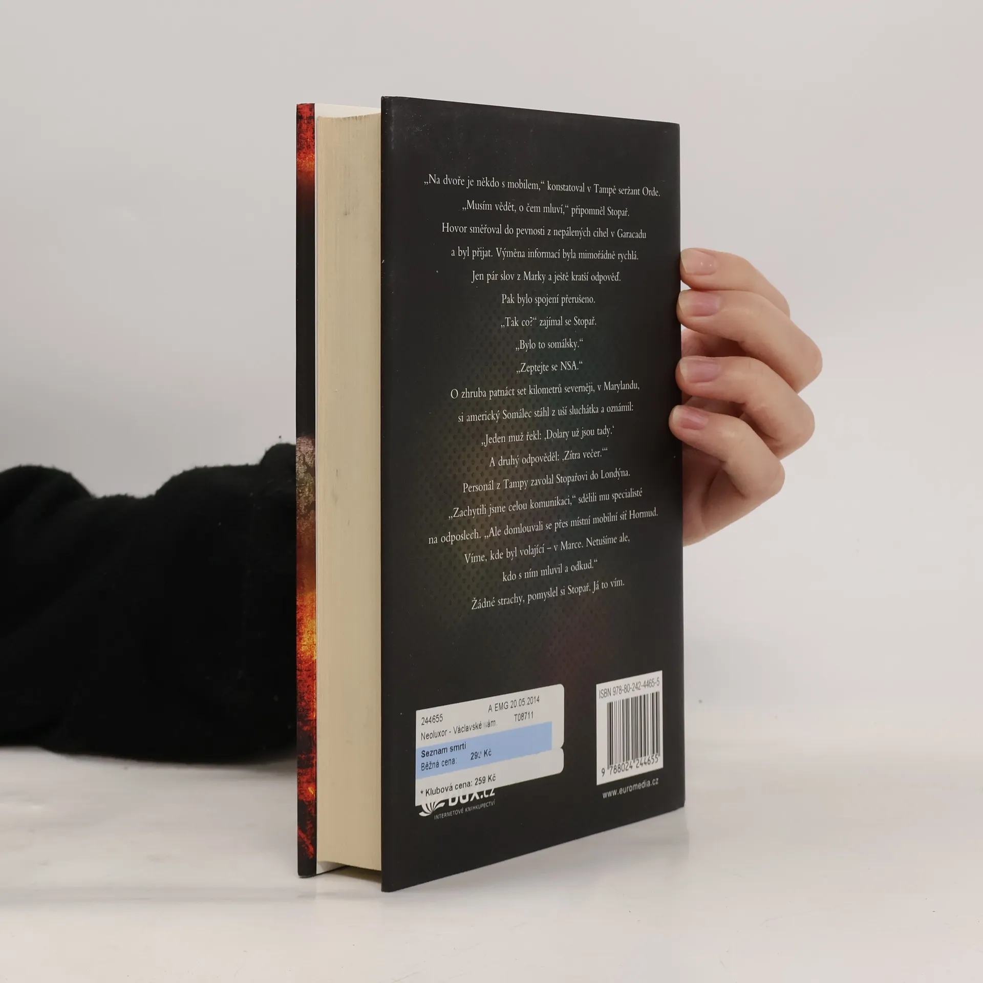 Ve Virginii sídlí agentura TOSA, jejímž úkolem je hledat a zabíjet ty, kteří jsou pro Spojené státy natolik nebezpeční, že se ocitli na takzvaném Seznamu smrti. Právě na něm přibylo nové jméno: terorista přezdívaný Kazatel, který radikalizuje mladé muslimy a nabádá je k vraždám. Bohužel pro něj zabijí i vysloužilého generála námořní pěchoty, jehož syn patří k nejlepším lovcům lidí ve službách TOSA. Ten se své práci věnuje už šest let. Nezná jméno, podobu ani místo pobytu nového cíle. Kazatel z toho však udělal osobní záležitost. Hon začíná… Nový román Fredericka Forsytha, mistra politického thrilleru, předvádí autora opět ve skvělé formě!