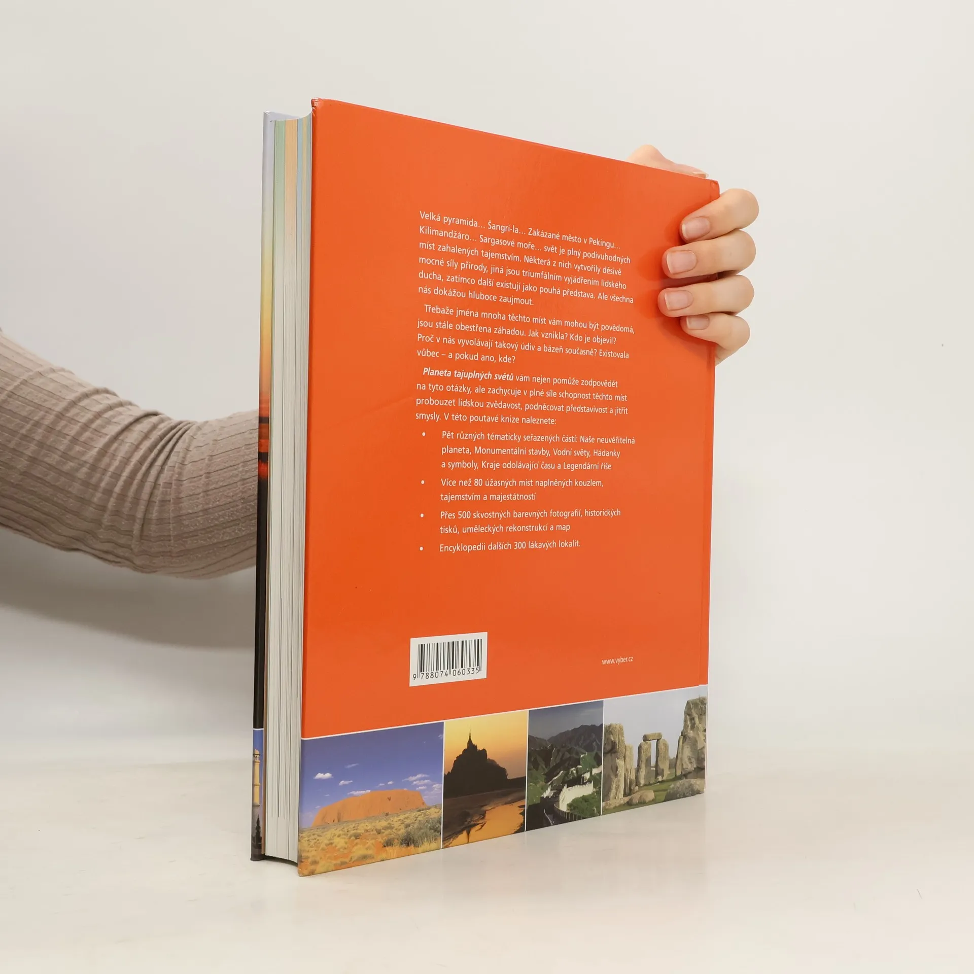 Stonehenge. Šangri-la. Veľkonočný ostrov. Veľký kaňon. Palác Potala v Tibete. Vrch Kilimandžáro. Moderní svět oplývá místy, která vzbuzují úžas a jsou zahalena tajemstvím. Některá vymodelovala mocná příroda, jiná jsou triumfálními projevy lidského ducha. Všechna nás bez rozdílu přitahují jakýmsi čarem. Ačkoliv jsou mnohá tato místa podle názvů dobře známá, skrývají dosud mnoho tajemství. Jak vznikla? Kdo je objevil? Opravu existují? Proč nás naplňují takovou posvátnou úctou?