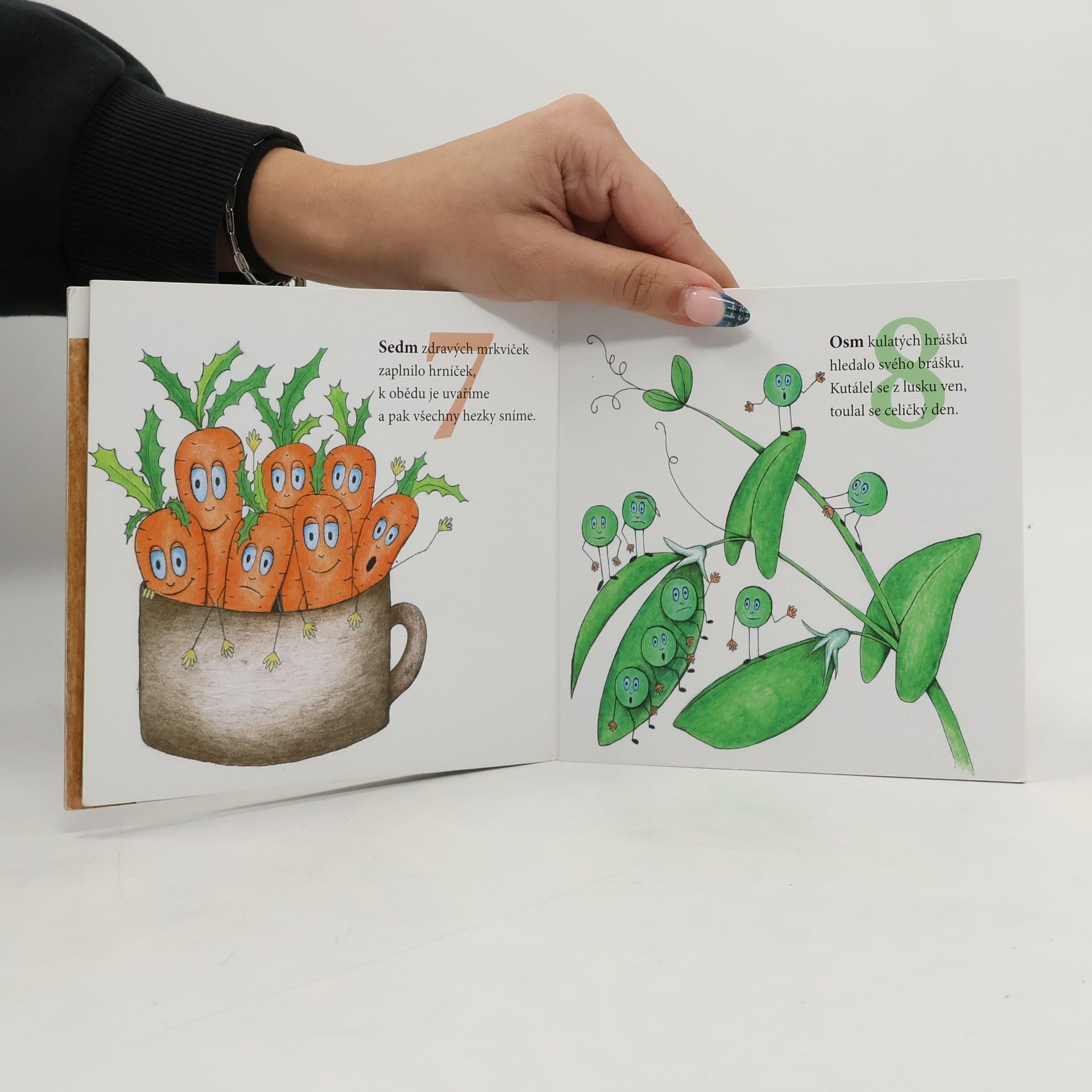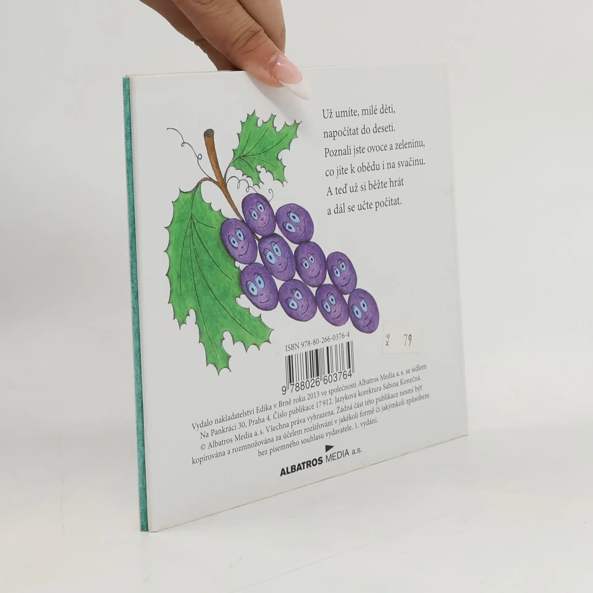 Leporelo pro nejmladší děti s jednoduchými básničkami a milými obrázky. Děti se učí počítat do deseti a současně se seznamují se základními druhy ovoce a zeleniny.