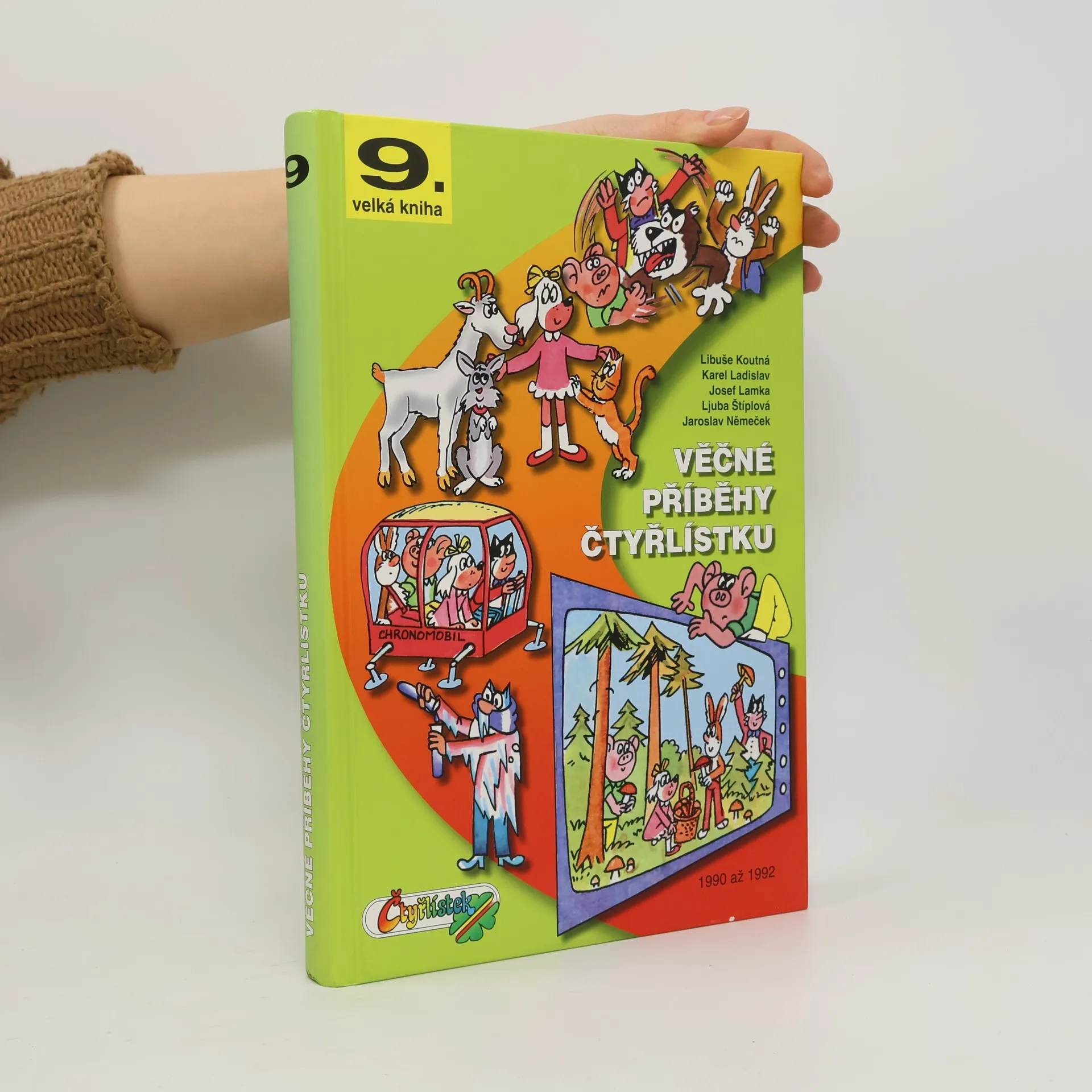 Již 9. velká kniha příběhů Čtyřlístku, která obsahuje příběhy z let 1990 až 1992, plynně navazuje na předchozí dříve vydané souborné příběhy. Příběhy: Ztraceni v čase Autoautomat Záhadné tlapky Hosté z galaxie X Tajemství almary Hospodáři Mador Zálesáci Elá - hop! Hodina malých duchů Dort v trezoru Vyhrávat se nevyplácí Bobík superstar Volání divočiny Past Tučné výkupné Zmražené léto Urychlovač růstu Kouzla nejsou čáry Ať žije Mikuláš ZOO v domě Brontosaurus Alík