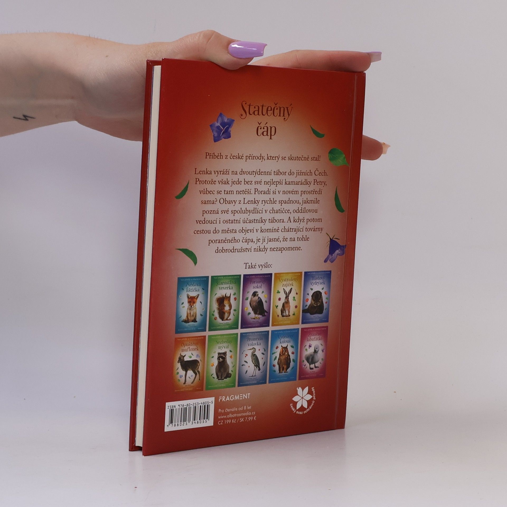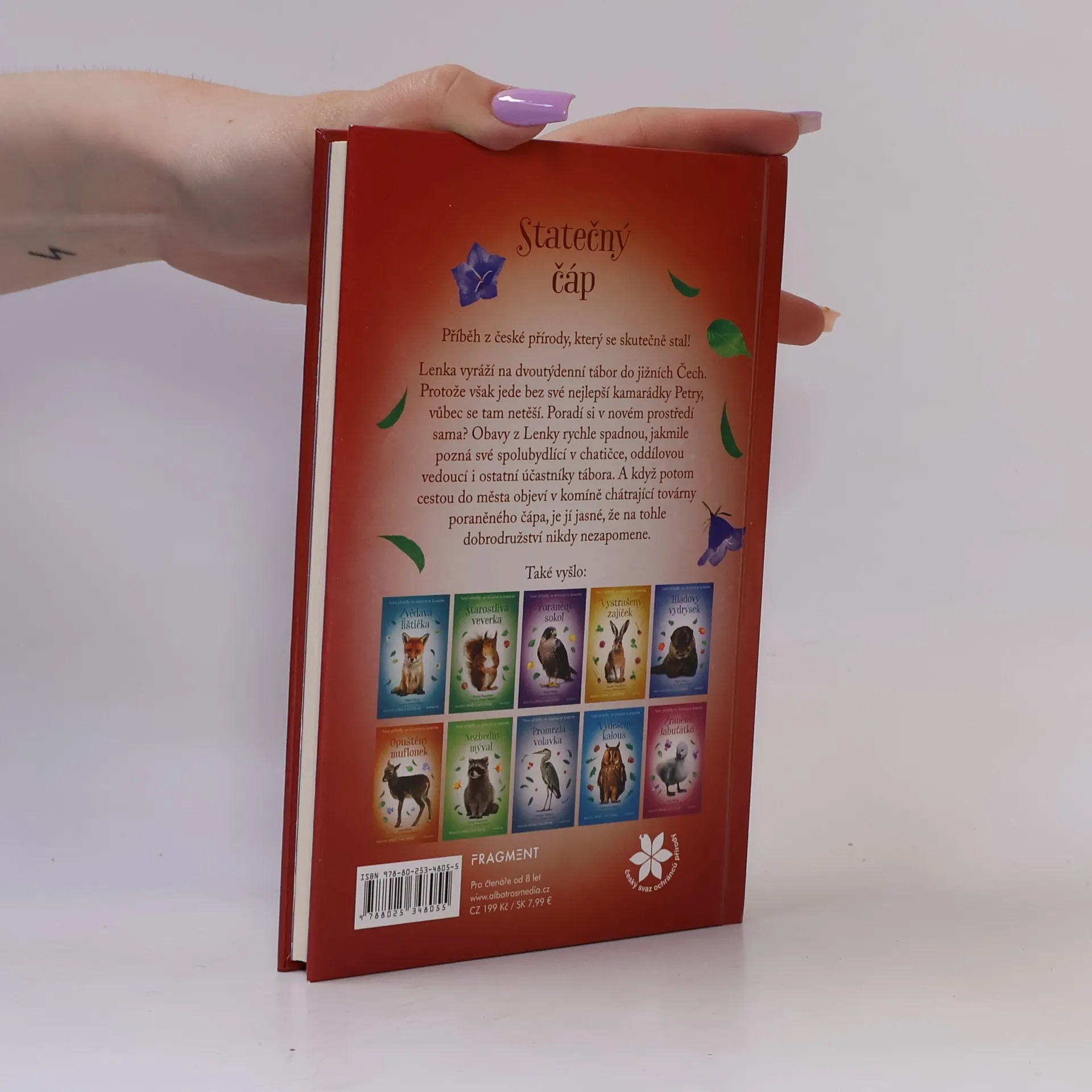 Příběh z české přírody, který se skutečně stal. Lenka vyráží na dvoutýdenní tábor do jižních Čech. Měla jet s kamarádkou Petrou, nakonec ale odjíždí sama. Bojí se, jestli to bez ní zvládne. Dokáže si najít kamarády? Jakmile pozná holky, se kterými bydlí v chatičce, obavy z ní rychle spadnou. A když potom cestou do města objeví v komíně chátrající továrny poraněného čápa, je Lence jasné, že na tenhle tábor nikdy nezapomene. Krásný příběh o lidech s dobrým srdcem, kteří pomáhají zachraňovat zvířátka.