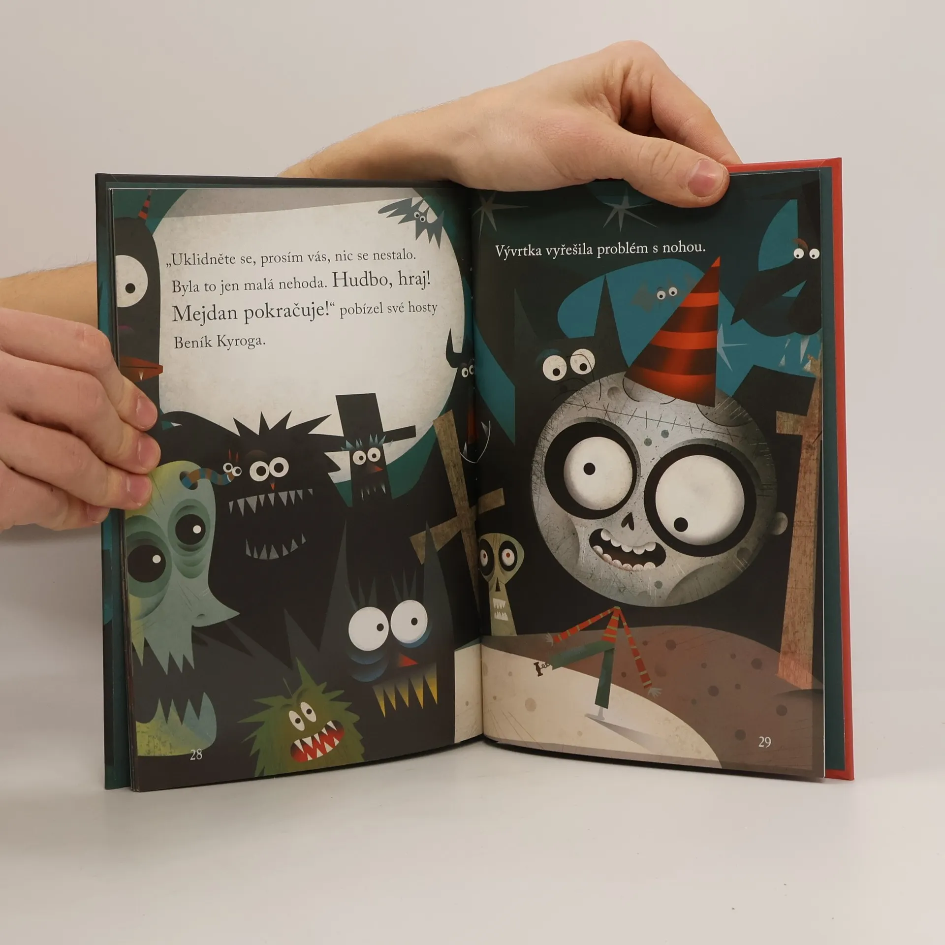 Knížka s nápaditou estetikou a příběhem, v němž je v jemném poměru namíchán humor, strach a napětí. Tradiční oslava: narozeniny Beníka. Jenomže Beník je zombík. Zombíci moc nemluví a tady už trochu smrdí. Ale Beník si to zařídil tak, že má plno kamarádů. Po pravdě řečeno jsou to vlastně velcí sympaťáci a mají rádi legraci. Proto když byly Beníkovi tři, sourozenci Nehodovi mu uspořádali oslavu. HRŮZA! DĚS! HOROR!